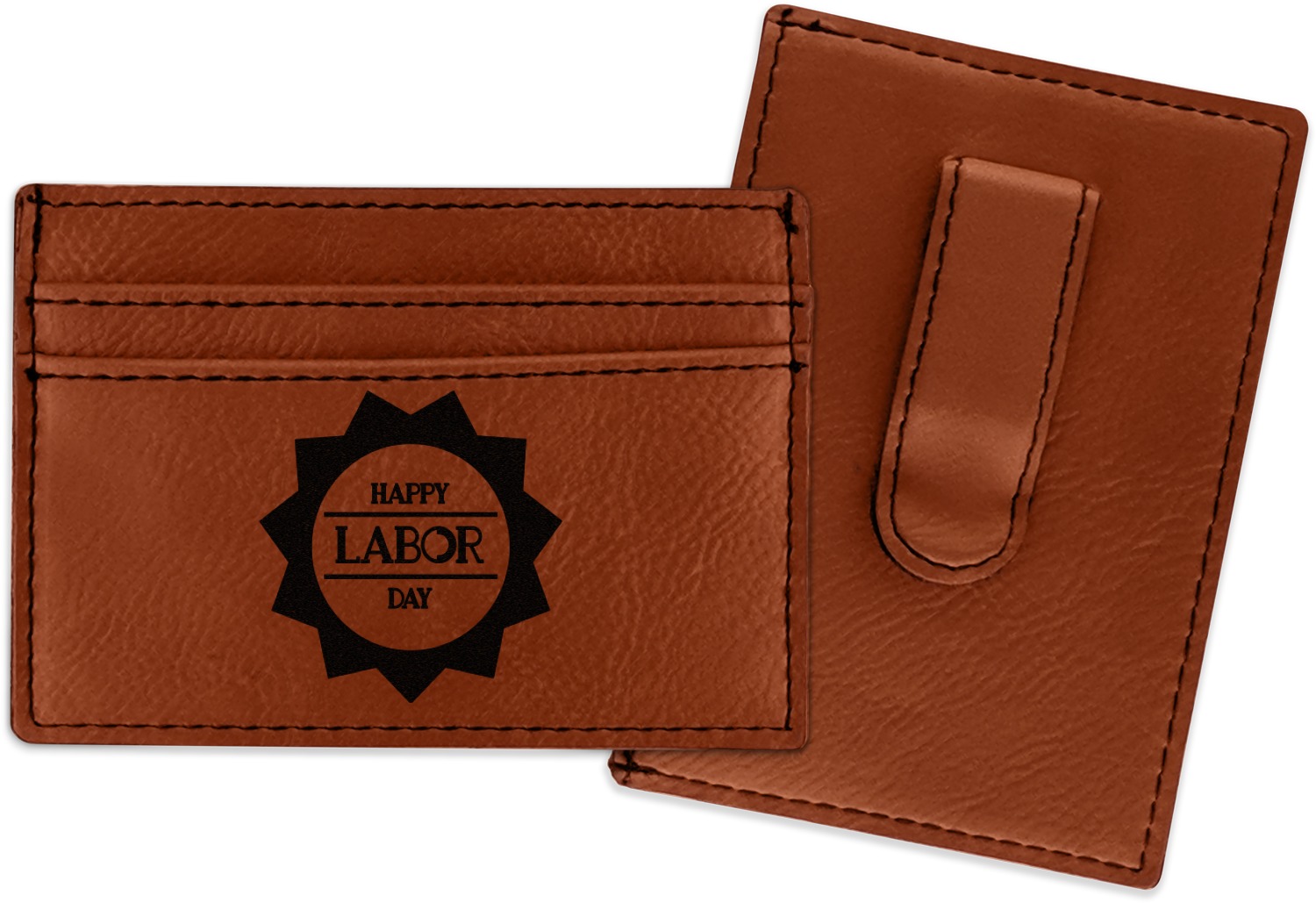 Made from a smooth brown leatherette material, these money clip wallets are the perfect accessory. They measure at approximately 4" x 2.75". On one side there is a money clip where you can slip in your cash. On the other side are three card slots for an ID and credit card or two. The money clip wallet will be laser engraved with your design on the side with the credit card slots. The graphic will come out as a black color.