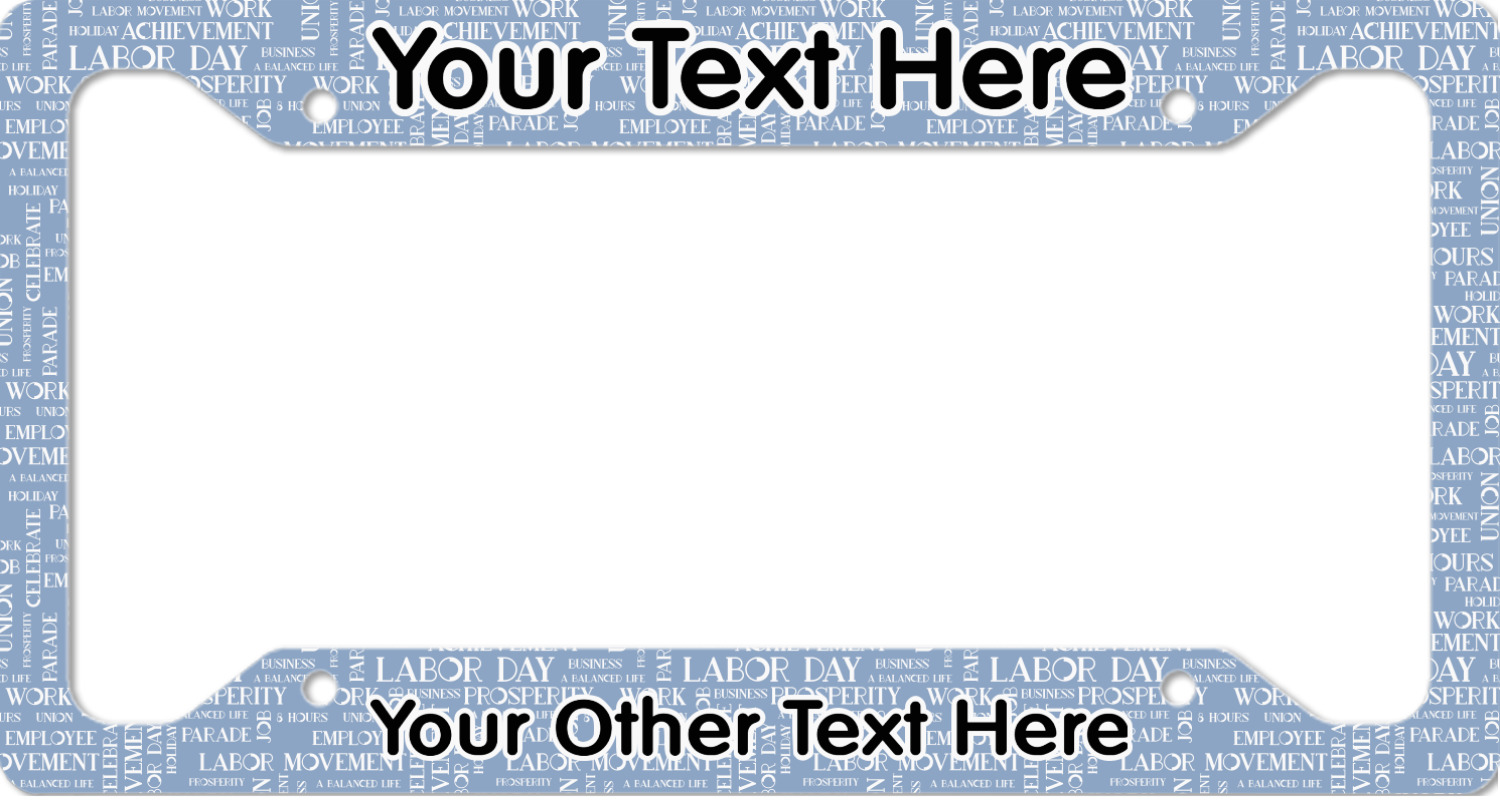 Each customizable license plate frame is made from a fine, yet sturdy aluminum material that measures approximately 6.5 x 12.15 inches, accommodating most standard license plates. The thickness allows the license plate frame to adhere completely to your license plate for a seamless look. We carry 3 styles of license plate frames to customize - Style A has texts on top and bottom, Style B offers texts on top and bottom as well as a full fill bottom border, and Style C offers text at the bottom only. The personalized license plate frame comes with four mounting holes for easy installation! We print each custom design across the frame with a glossy finish.
