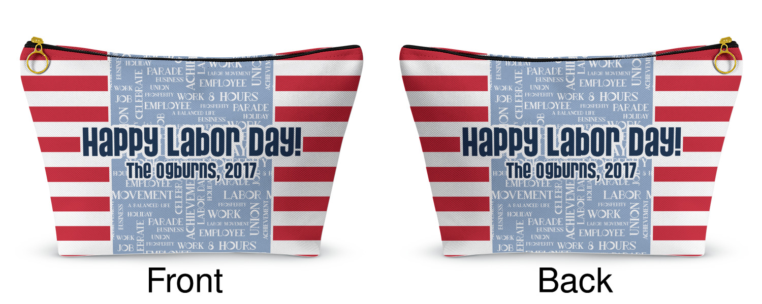 A fun red, white, and blue Labor Day badge is used in the coordinating part of the design. There are two different kinds of fonts used. One in the word cloud and one used in the personalization.