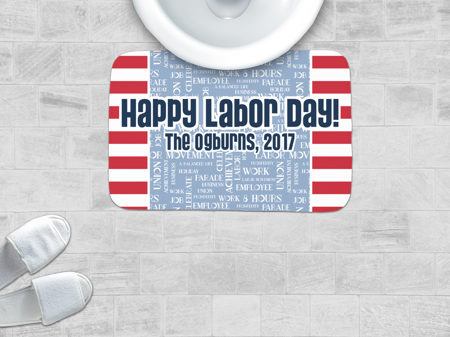 A fun red, white, and blue Labor Day badge is used in the coordinating part of the design. There are two different kinds of fonts used. One in the word cloud and one used in the personalization.
