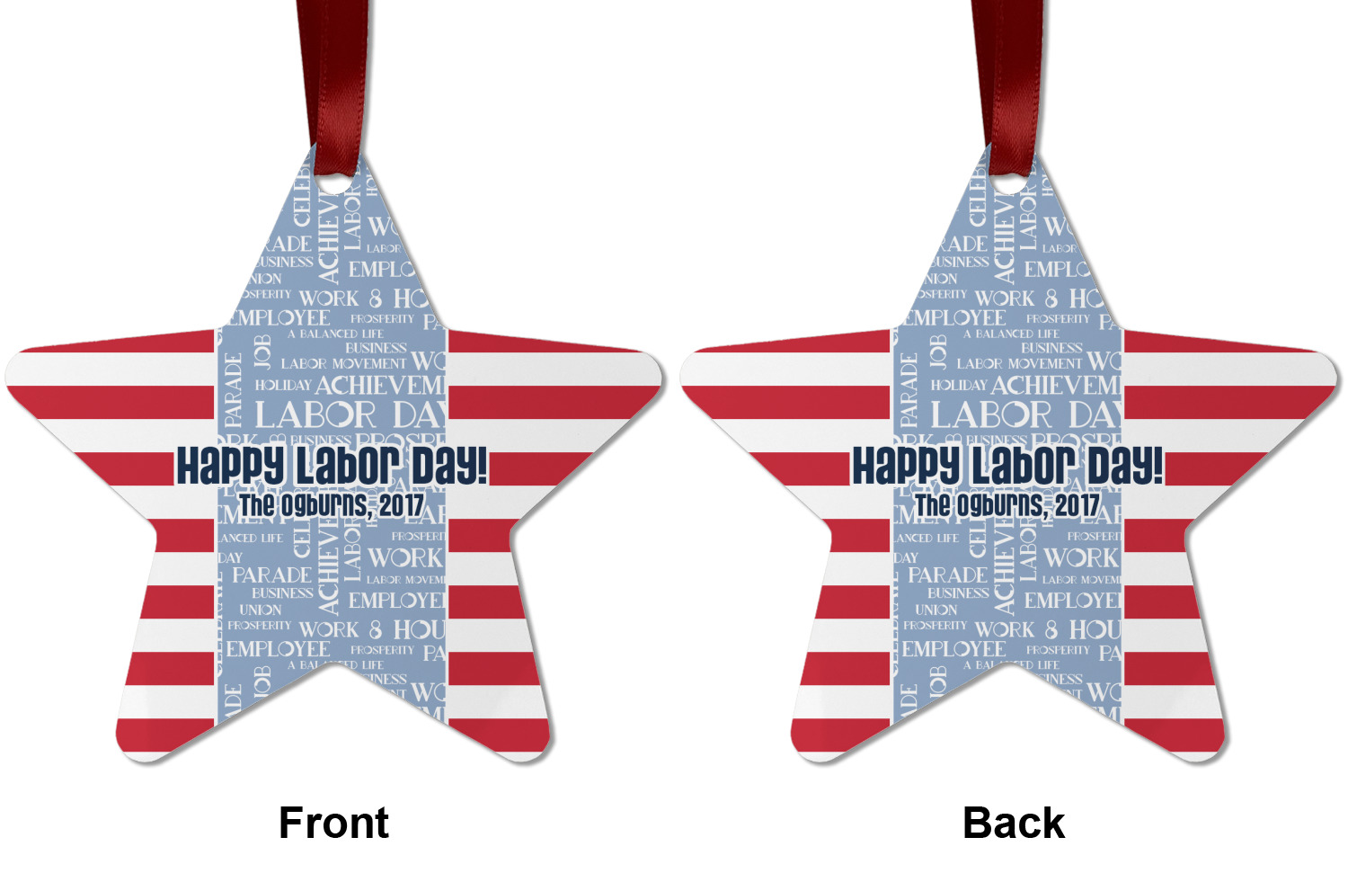 A fun red, white, and blue Labor Day badge is used in the coordinating part of the design. There are two different kinds of fonts used. One in the word cloud and one used in the personalization.