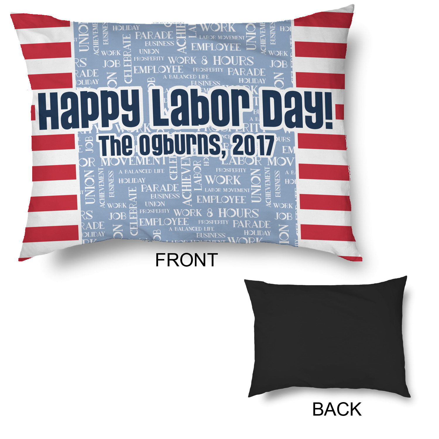 A fun red, white, and blue Labor Day badge is used in the coordinating part of the design. There are two different kinds of fonts used. One in the word cloud and one used in the personalization.