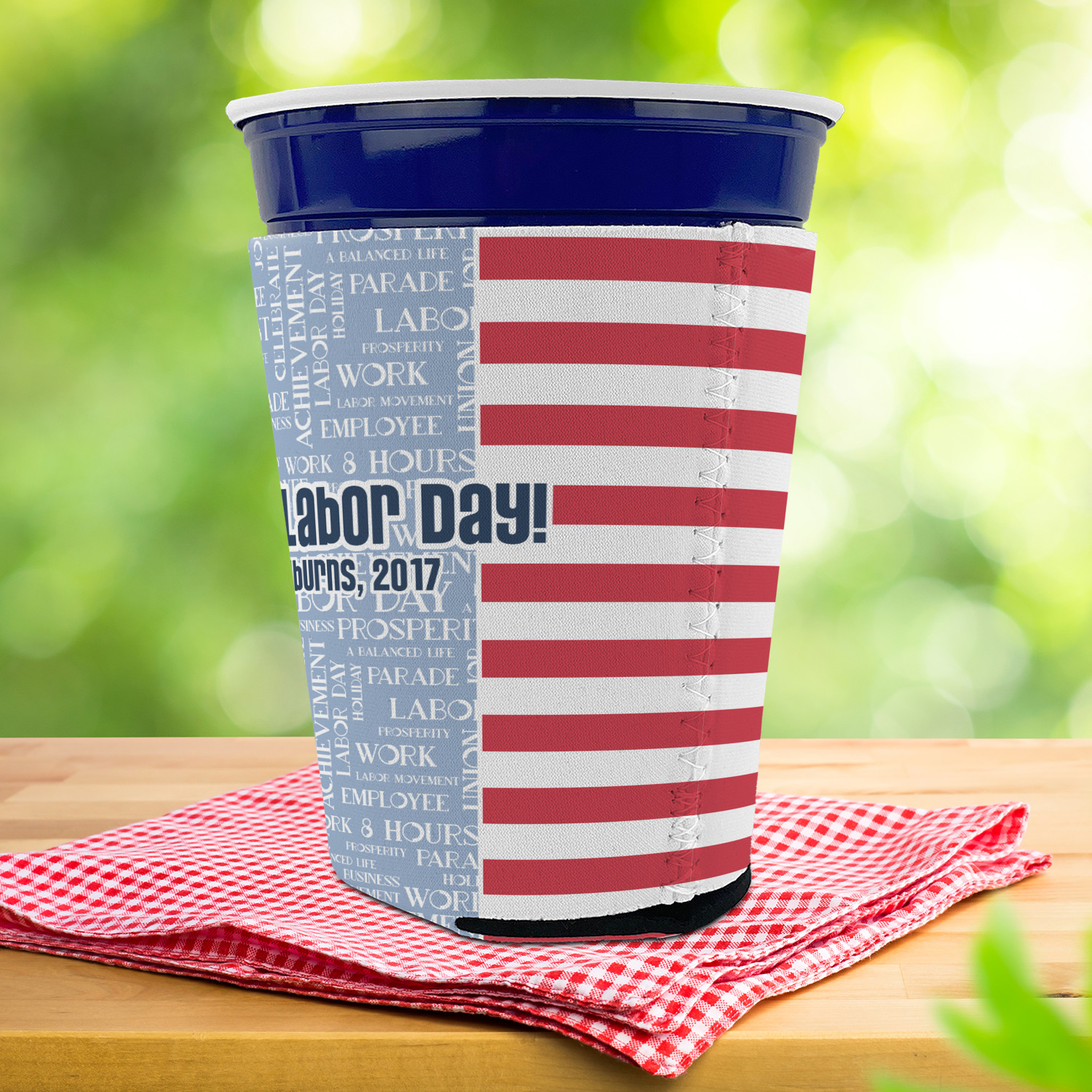 Made from neoprene with a polyester outer fabric and sewn seams, these premium quality party cup sleeves are very durable and will hold up to heavy use. They are available in 2 styles - with a bottom or just a sleeve to go around the outside of the tapered cup. The sleeve covers are about 4" tall and cover about 90% of the classic 16 oz. Solo cup.