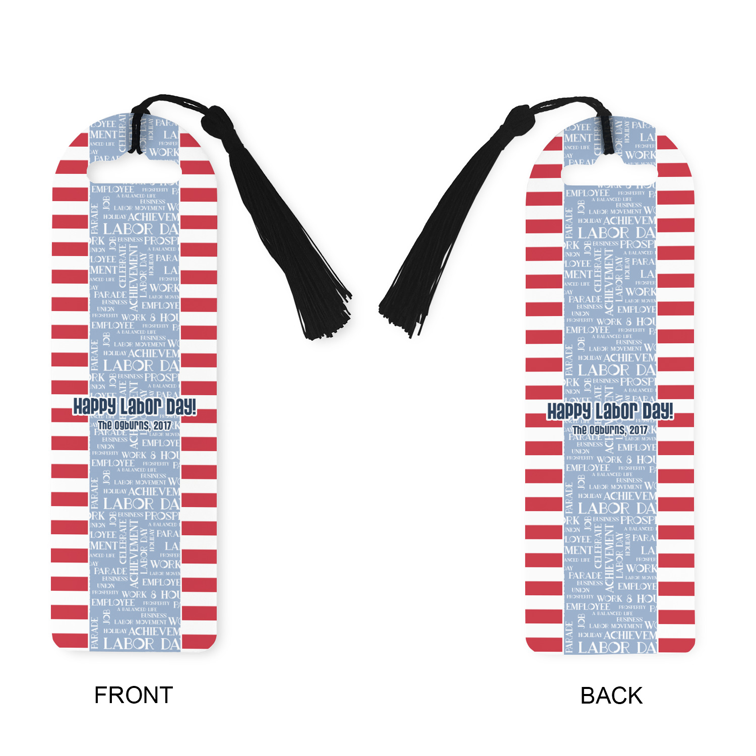 Made from a durable, flexible plastic, these bookmarks are printed with your custom design on them. With the tassel on them they make it easy to find your page in your book. These are a rectangular shape 7 1/4 inches tall with a rounded top and are approximately 2 1/4 inches wide.