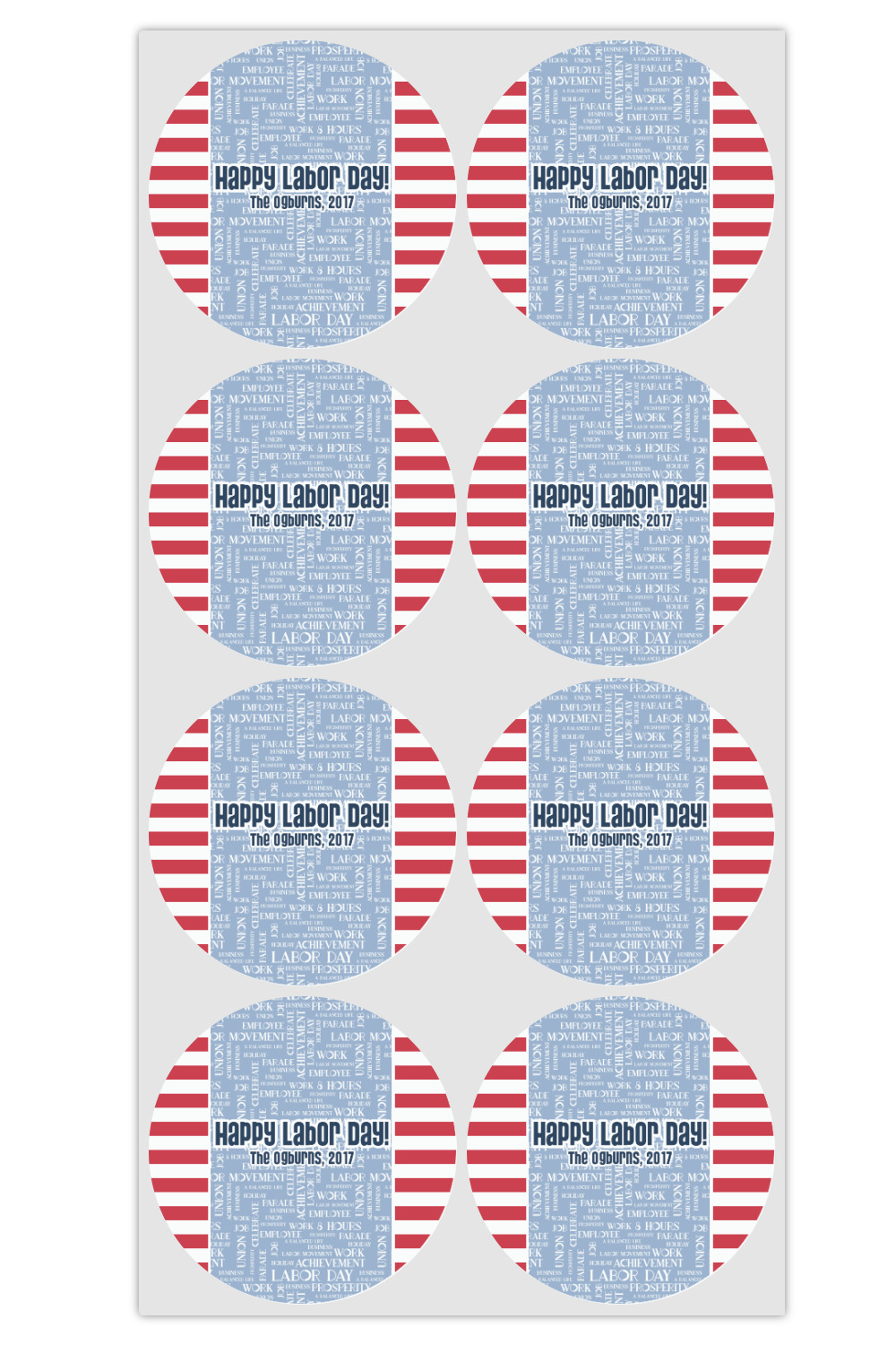 A fun red, white, and blue Labor Day badge is used in the coordinating part of the design. There are two different kinds of fonts used. One in the word cloud and one used in the personalization.
