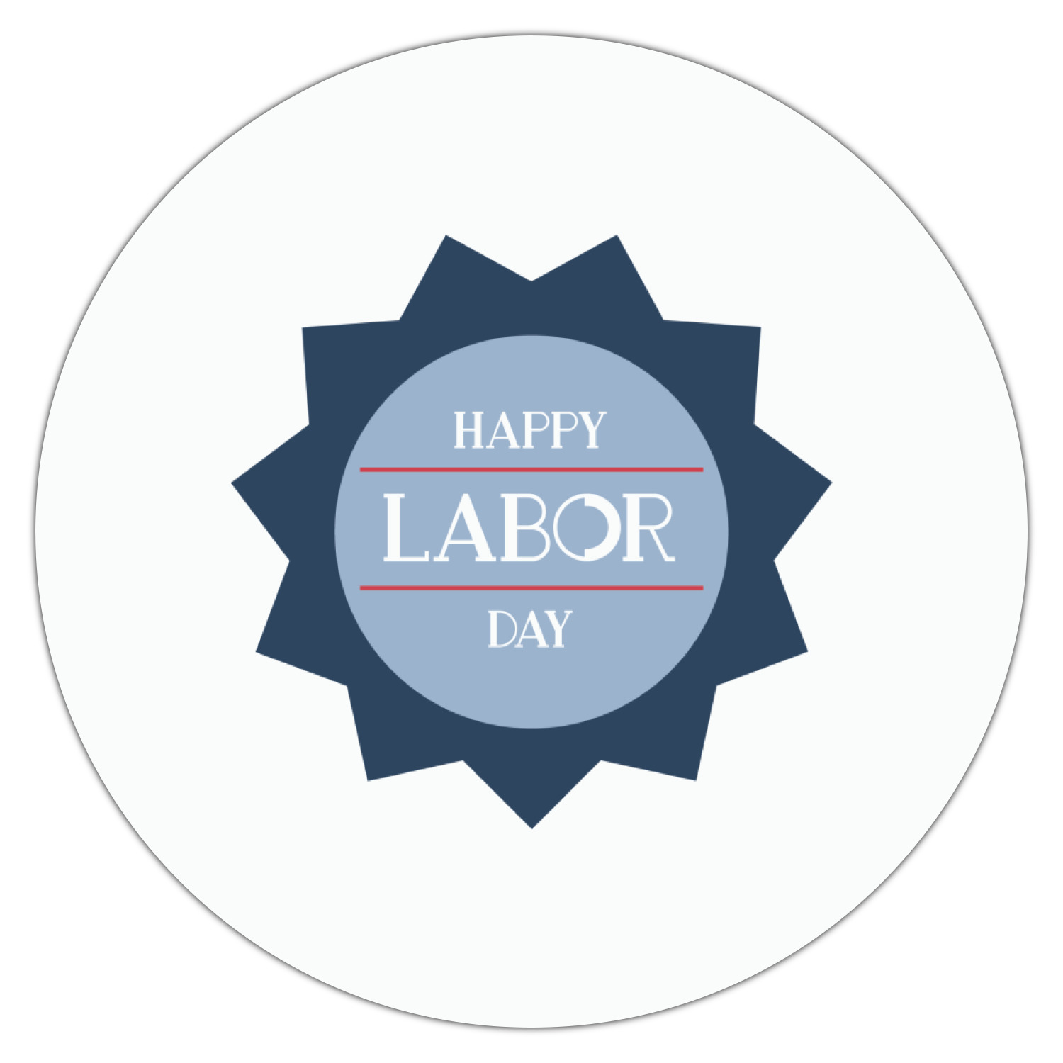 This Labor Design is a fun bright red and a subtle light blue, with white accenting all around. A red and white striped pattern is used, as well as a light blue pattern with a white word cloud on it. The word cloud pattern is a combination of themed words having to do with Labor Day, like "work," "prosperity," and "Labor Day." The red and white striped pattern is used on either side of the word cloud pattern, creating a three-part design.