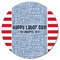 A fun red, white, and blue Labor Day badge is used in the coordinating part of the design. There are two different kinds of fonts used. One in the word cloud and one used in the personalization.
