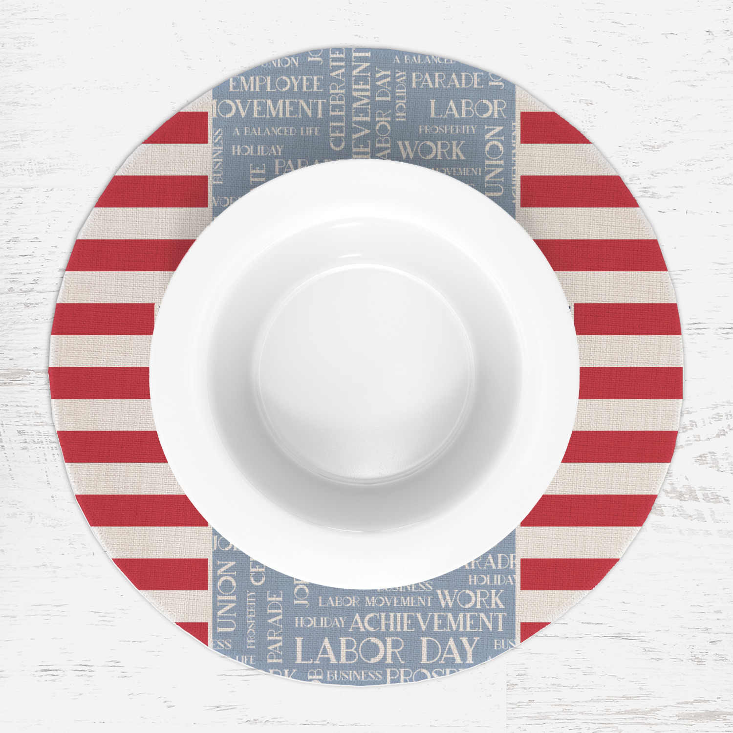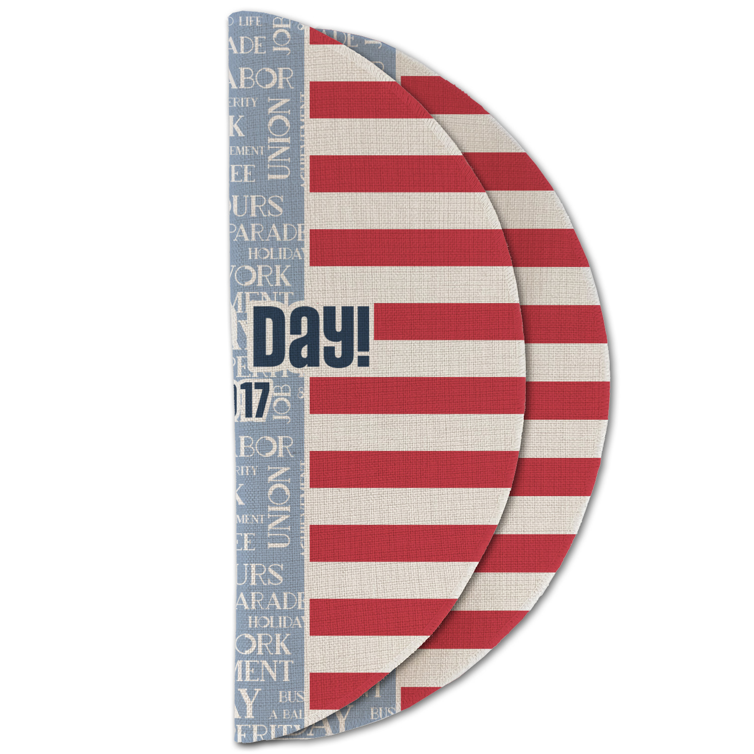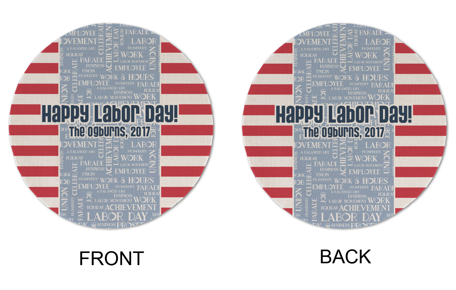 A fun red, white, and blue Labor Day badge is used in the coordinating part of the design. There are two different kinds of fonts used. One in the word cloud and one used in the personalization.