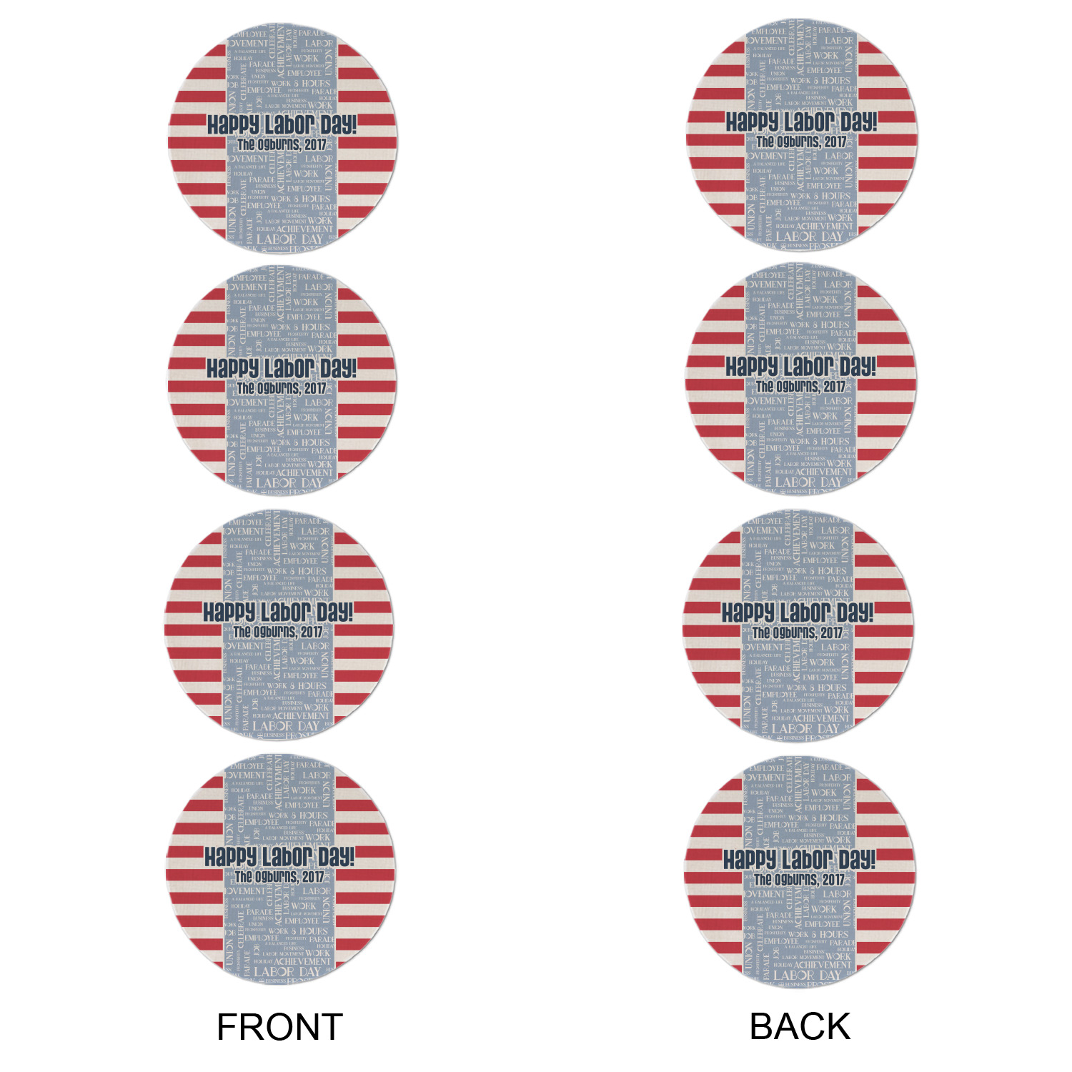 A fun red, white, and blue Labor Day badge is used in the coordinating part of the design. There are two different kinds of fonts used. One in the word cloud and one used in the personalization.