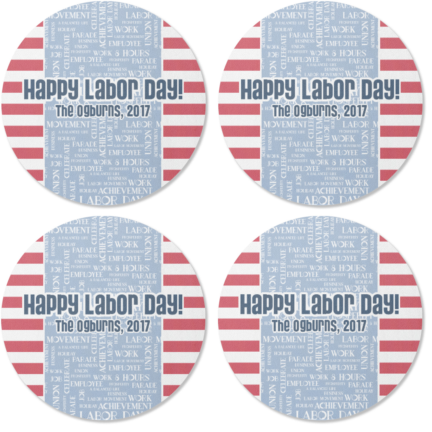 A fun red, white, and blue Labor Day badge is used in the coordinating part of the design. There are two different kinds of fonts used. One in the word cloud and one used in the personalization.