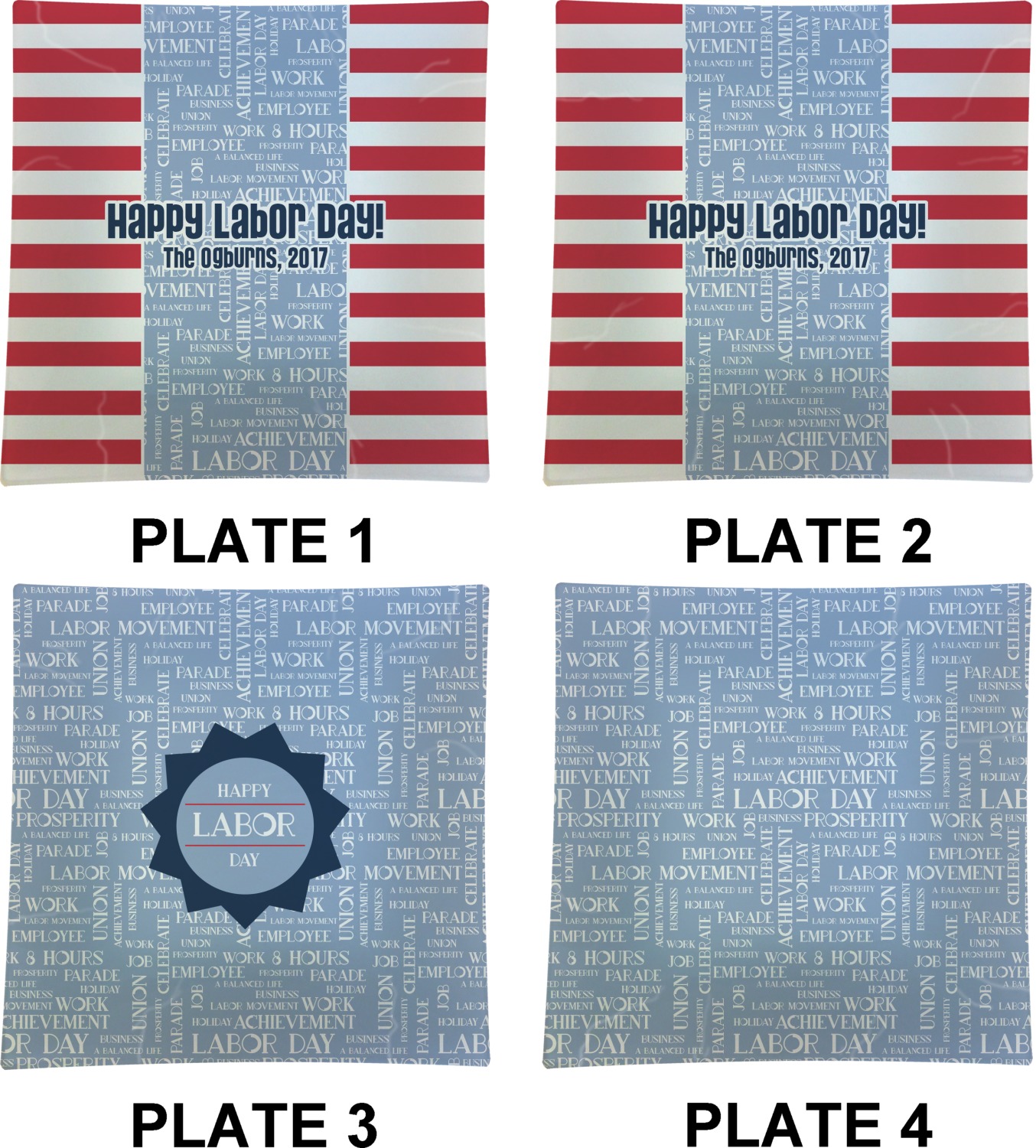 A fun red, white, and blue Labor Day badge is used in the coordinating part of the design. There are two different kinds of fonts used. One in the word cloud and one used in the personalization.