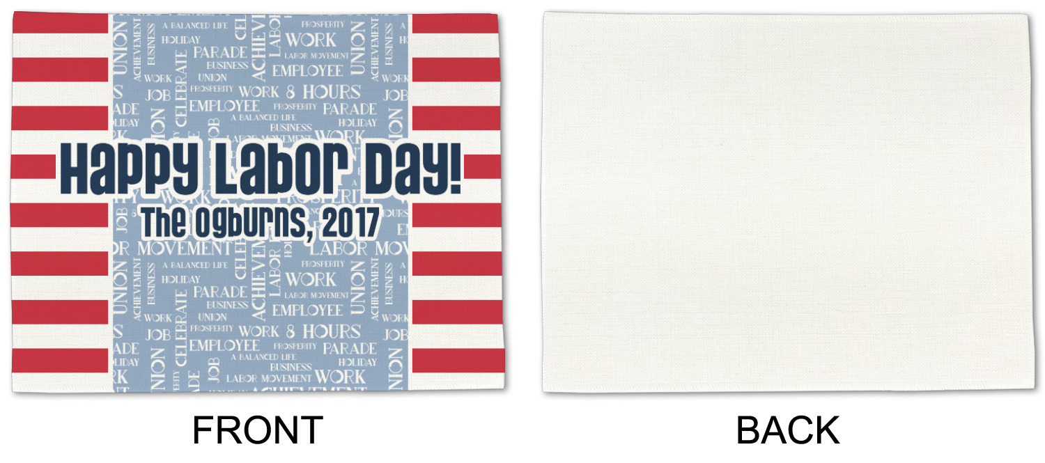 A fun red, white, and blue Labor Day badge is used in the coordinating part of the design. There are two different kinds of fonts used. One in the word cloud and one used in the personalization.