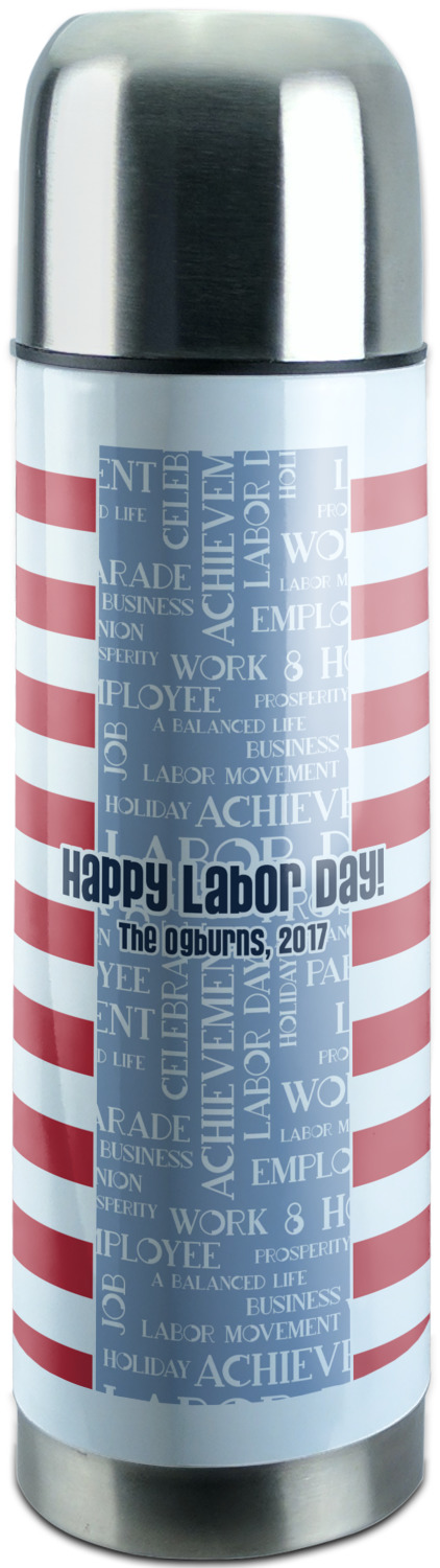 Manufactured from stainless steel, this thermos is built durably and double-walled insulated to preserve the temperature of your drink for hours. It also features a screw off lid that is made to also function as a small cup. Upon unscrewing this part of the thermos bottle, a pop-open, pour feature emerges. This feature allows you to slowly pour your beverage into your lid, ensuring a steady, controlled pour into your lid or other cup. With a capacity of 25 ounces, these large thermoses can hold several servings of your favorite beverage. Your customization is displayed all around the bottle with bright, vibrant color.