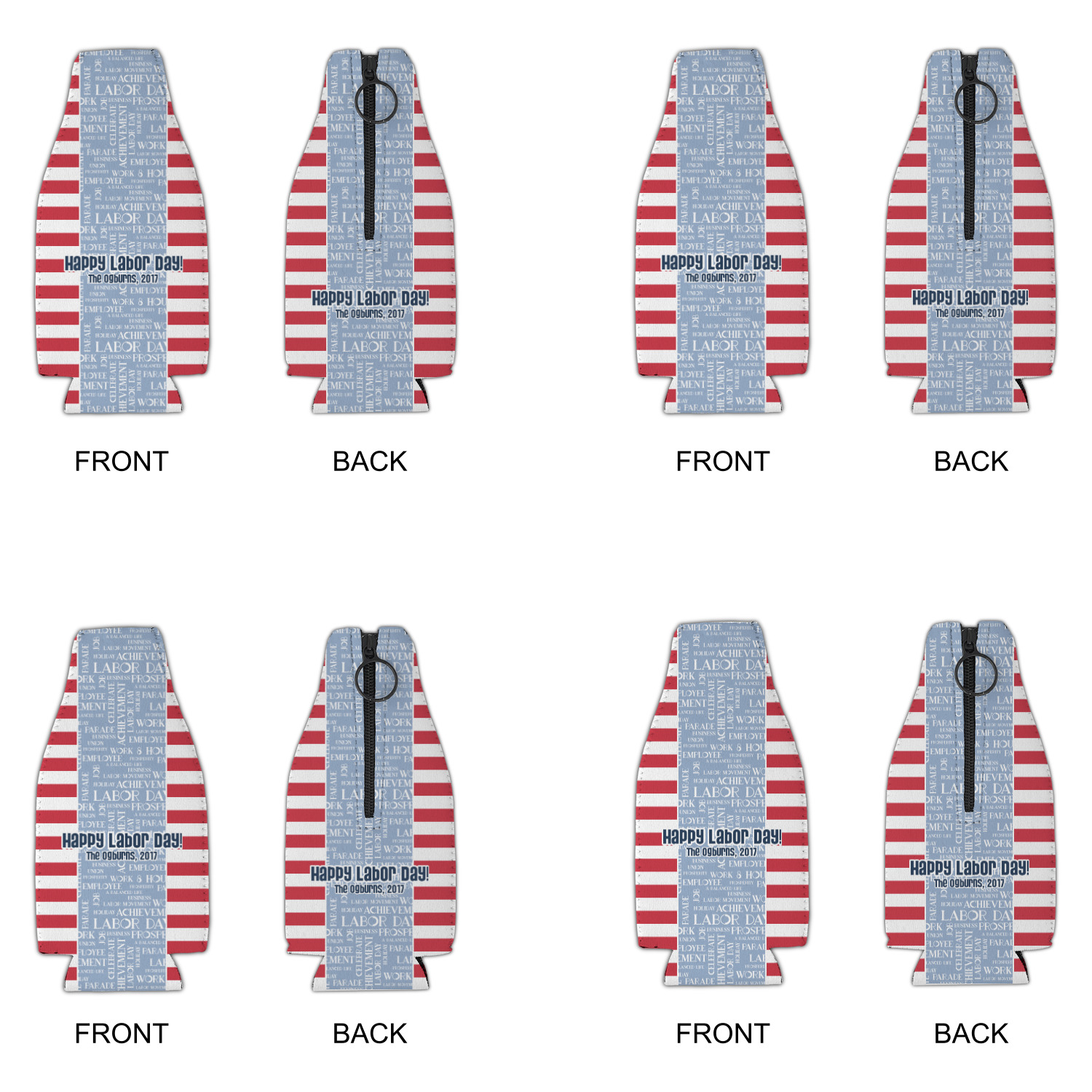 A fun red, white, and blue Labor Day badge is used in the coordinating part of the design. There are two different kinds of fonts used. One in the word cloud and one used in the personalization.