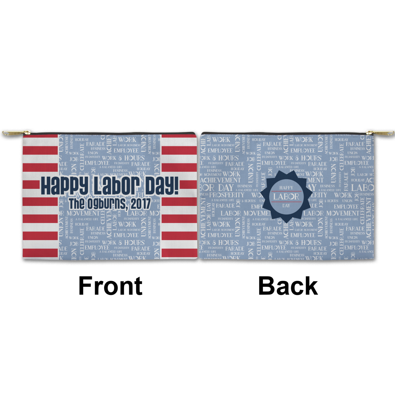 A fun red, white, and blue Labor Day badge is used in the coordinating part of the design. There are two different kinds of fonts used. One in the word cloud and one used in the personalization.