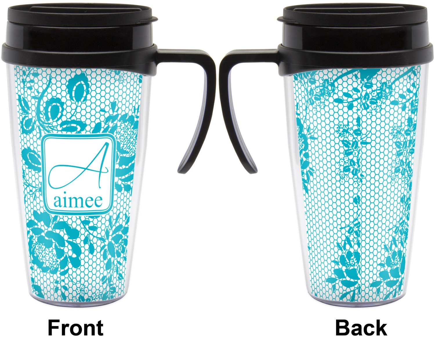 These thermal mugs are free of BPA, and insulated, to keep your drinks hot or cold. The black, snap on lid and the slider for sipping allows you to conveniently sip your drink without constantly worrying about a disastrous spill. We offer this mug with and without a handle, to better suit your needs. Each custom thermal mug holds up to 16 ounces of liquid and displays your customization on all sides on premium gloss media inserts.