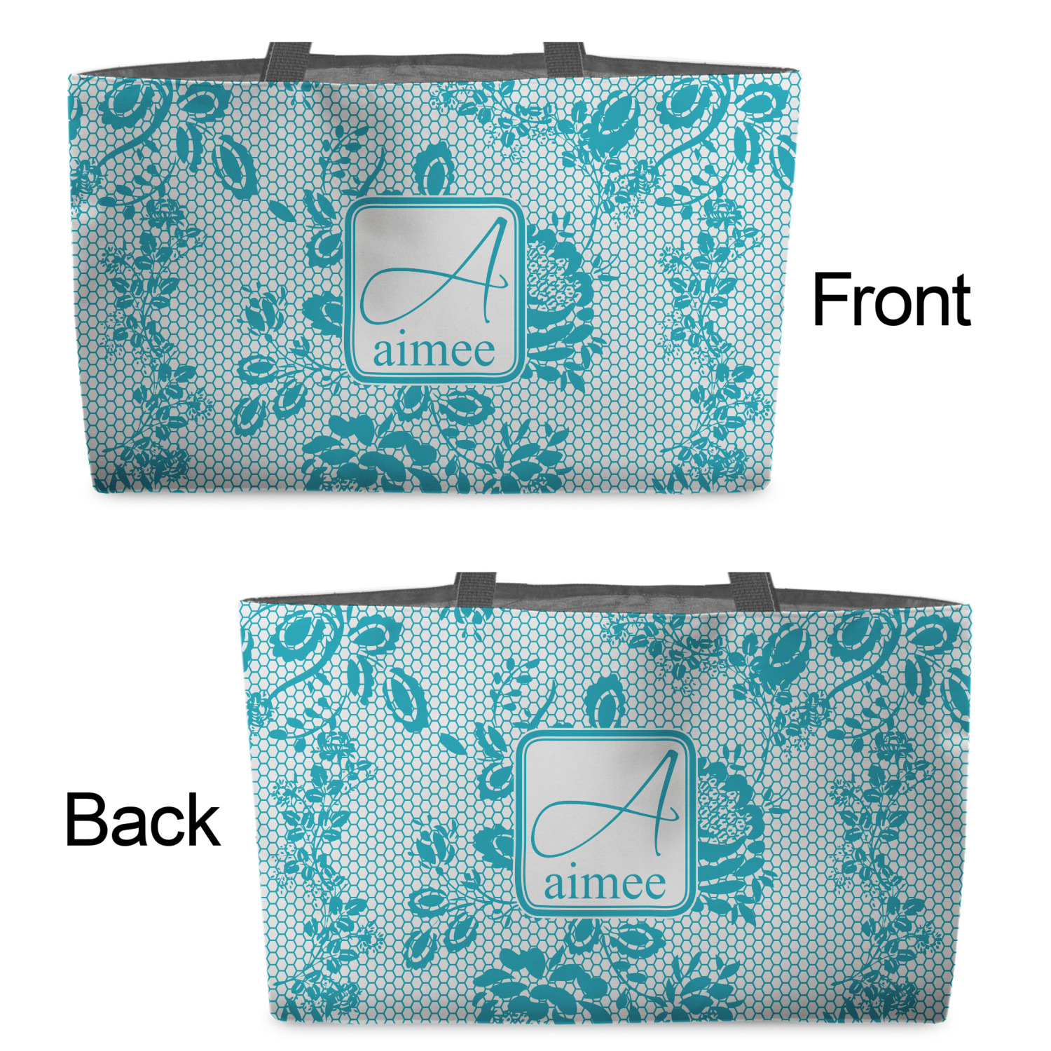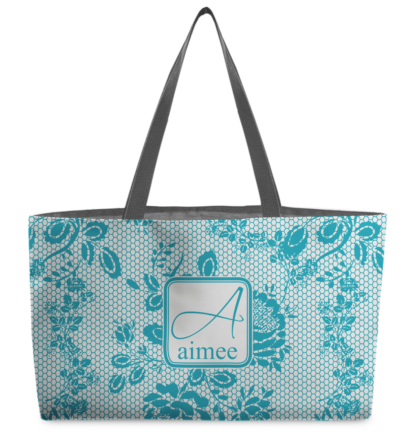 These beach totes are handmade here in the USA. Fabric is printed with your design. The tote is then sewn from the fabric pieces, lining and handles added.