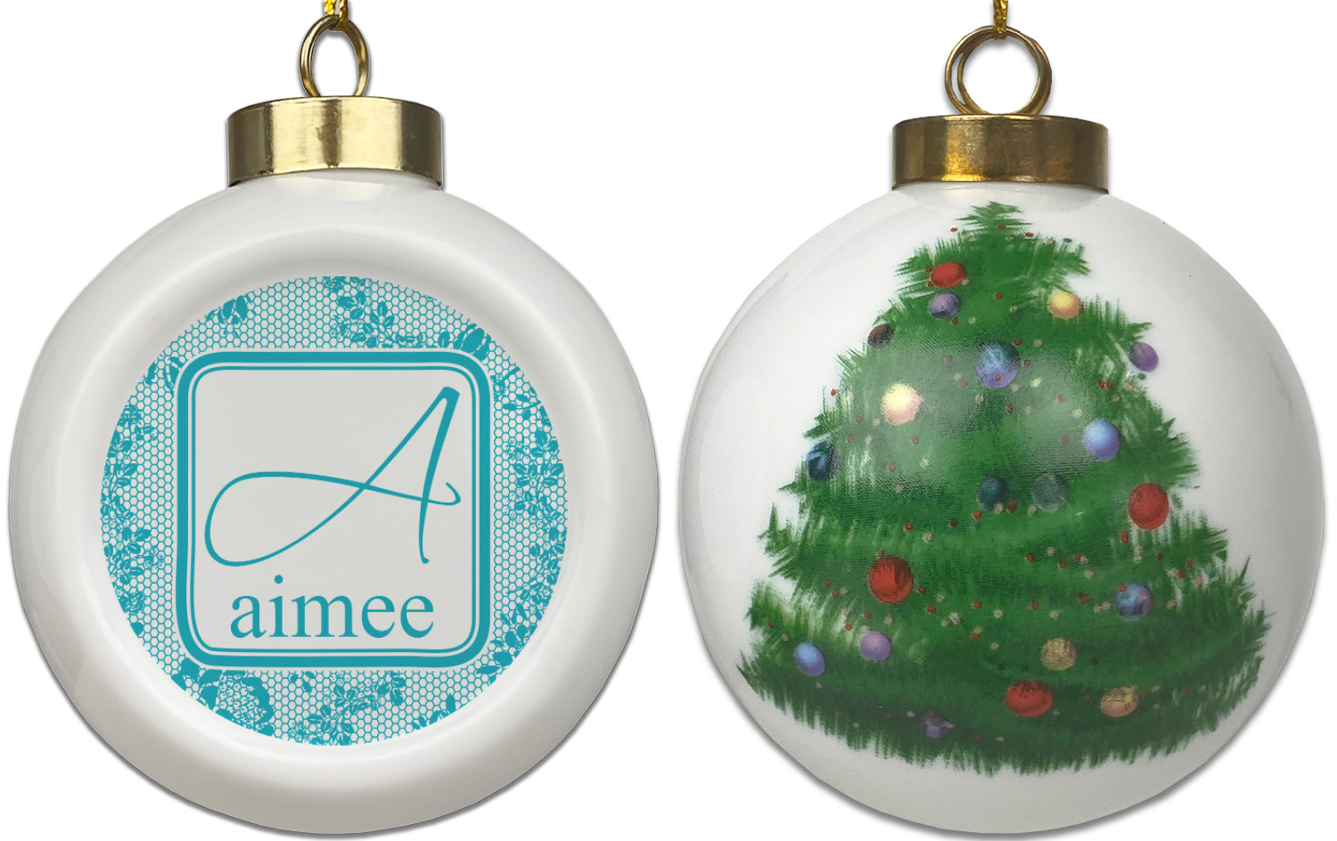 Our Christmas ornaments are a unique ceramic ball shape with a twist as it has a flat face to display your custom design! Select from one of our two design types - Christmas Tree or Poinsettia Garland - to adorn the curved back of your personal design. Each ornament measures 3H x 2.5W x 2D accompanied with a gold string accent for finishing touches to hang on your beautiful Christmas tree!