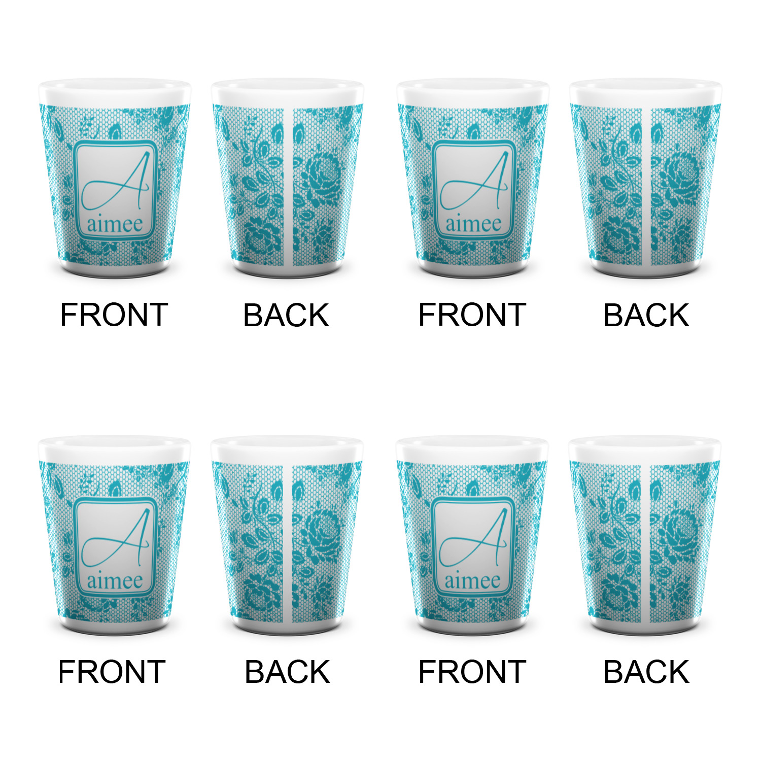 Made from ceramic these shot glasses are printed in full color with the design of your choice. These are a standard 1.5oz size and stand 2.25" tall. Available in a full white ceramic or a two-tone with a black color inside the shot glass. Buy a single or a set of 4, all of which can be designed separately to get you just what you want and need.