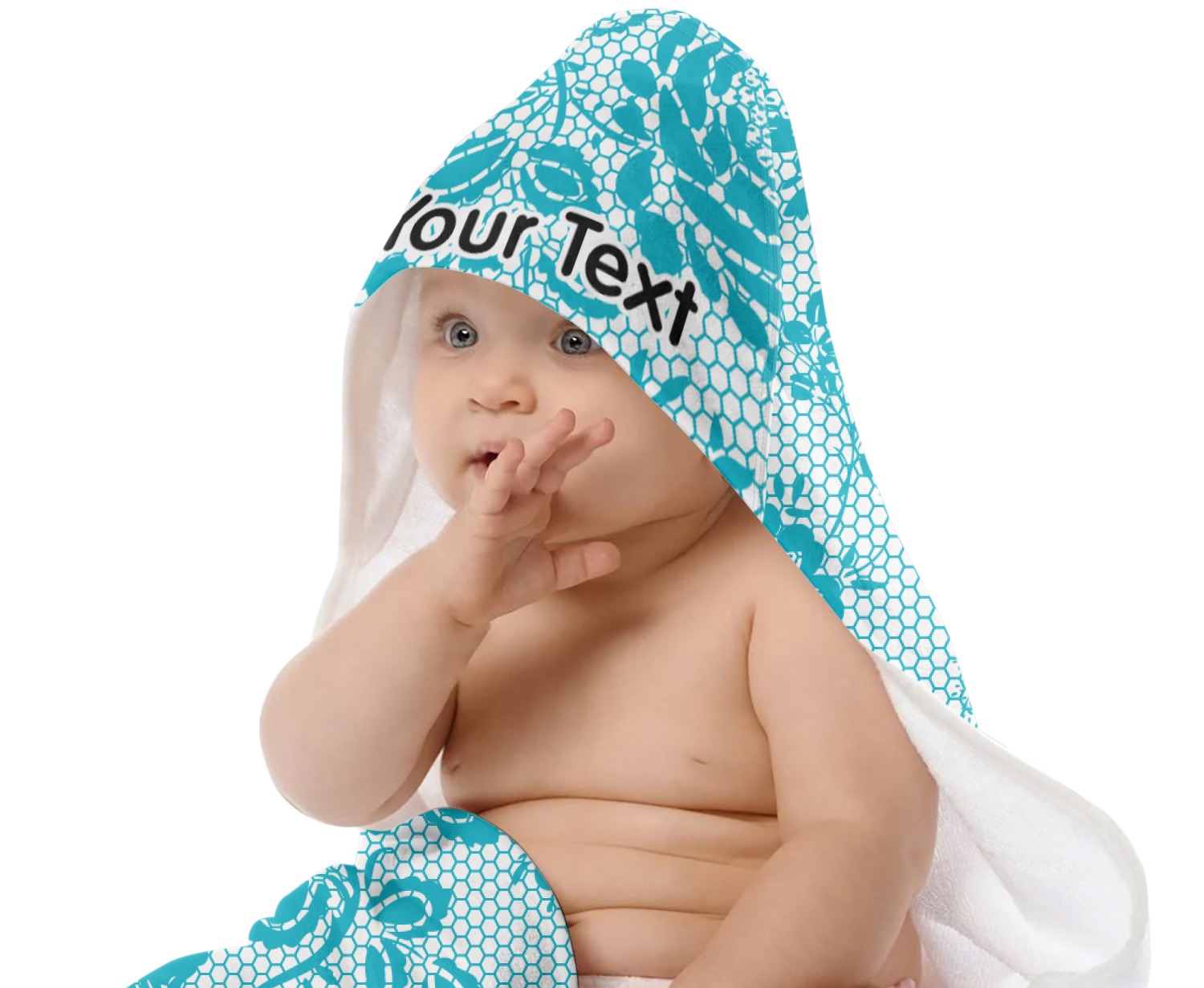 This baby towel is made with a plush microfiber velour and cotton terry. and thus will be soft and gentle against your newborn's skin, but also, very absorbent. Your customization is printed across the front & the hood, while the inside is a classy white.