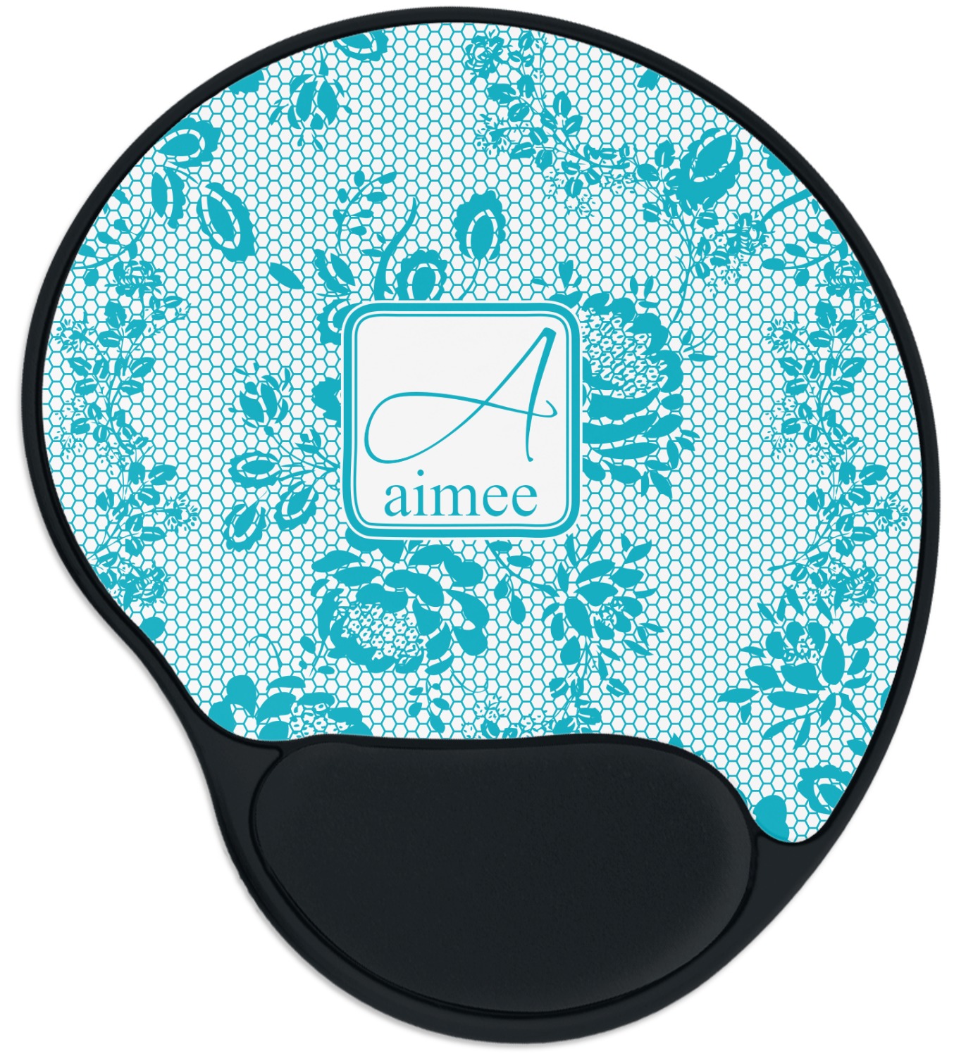The top of these personalized mouse pads are made from a polyester, while the underside is plastic. The back of these mouse mats include rubber feet to prevent any slippage while in use. A padded wrist support, made from plush memory foam, occupies the bottom section of these computer mouse pads. Your customized design is printed onto the face of this mat, with the remaining sides and support piece colored in black. The mat itself is rounded and measures at 10.25" x 9.13".