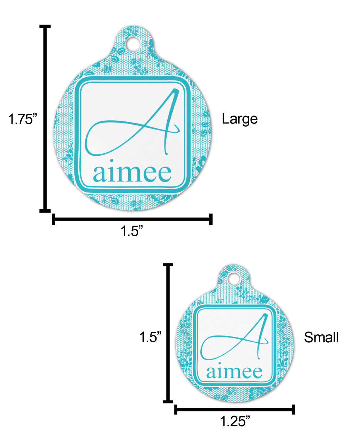 The sturdy, rounded, aluminum tags are available in 2 sizes.