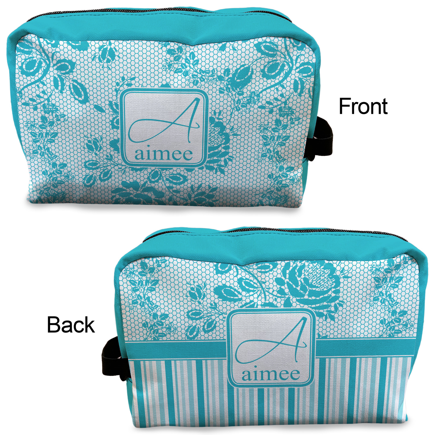 Designing a toiletry bag for yourself or as a gift can be a lot of fun. Our goal is for you to design a bag that reflects your personality and personal style. Our dopp kits are set up so you can design the front, the back and select a coordinating color for the zippered area.