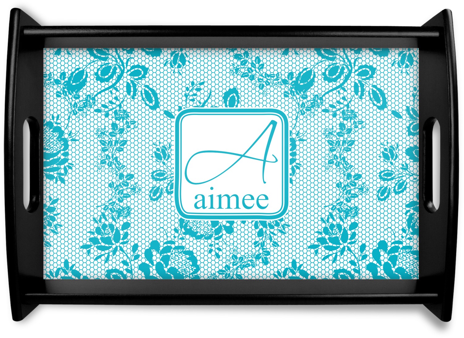 This serving tray with handles features square edges and two rounded sides, creating a very modern look. Each side is fabricated from a beautifully cut, natural wood. The bottom of the interior of the tray displays your customized design in bright, vibrant color. The tray is sold in both a black color and a natural wood look. Each variation of the wood serving tray has two sizes: Small, which is 14" x 10" x 2.25", and Large, which is 19.5" x 13.5" x 2.75".
