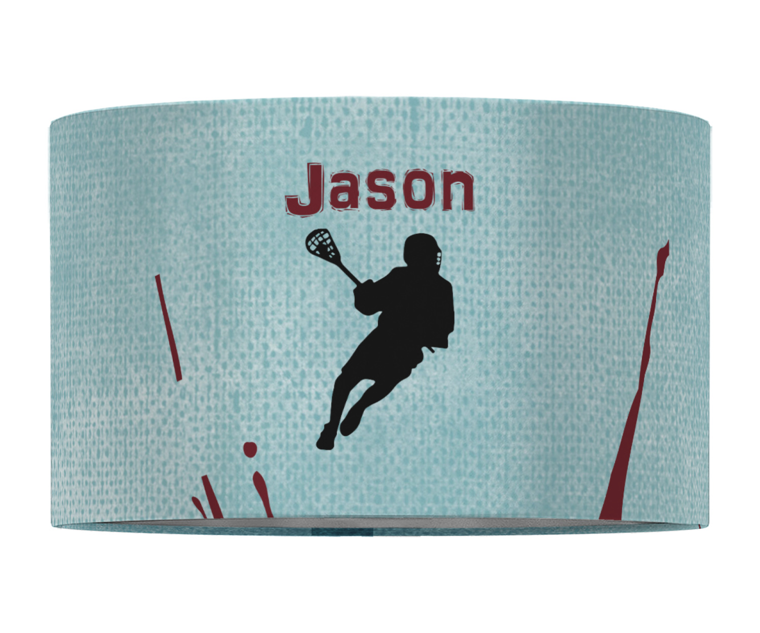 This design has a cool blue background with a literal splash of maroon. Your personalization goes above the lacrosse player silhouette. The movement in this design gives the perfect feeling for a sports design.