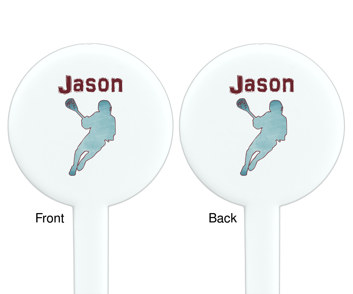 This design has a cool blue background with a literal splash of maroon. Your personalization goes above the lacrosse player silhouette. The movement in this design gives the perfect feeling for a sports design.