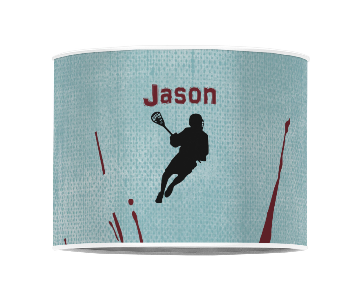 This design has a cool blue background with a literal splash of maroon. Your personalization goes above the lacrosse player silhouette. The movement in this design gives the perfect feeling for a sports design.