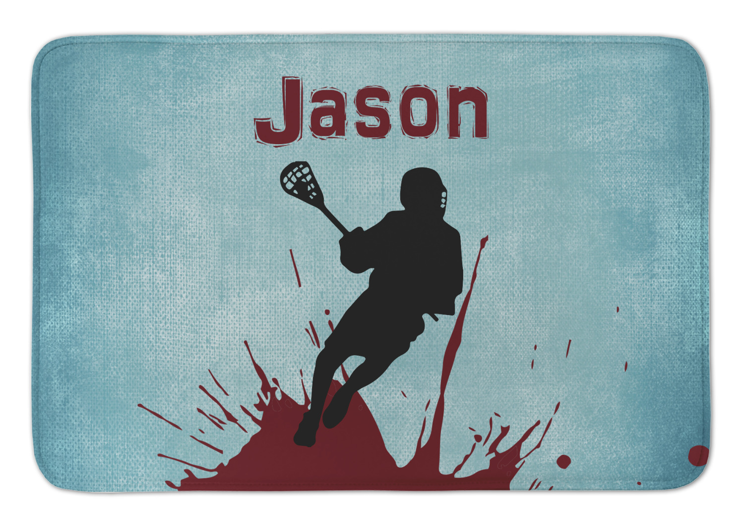 This design has a cool blue background with a literal splash of maroon. Your personalization goes above the lacrosse player silhouette. The movement in this design gives the perfect feeling for a sports design.