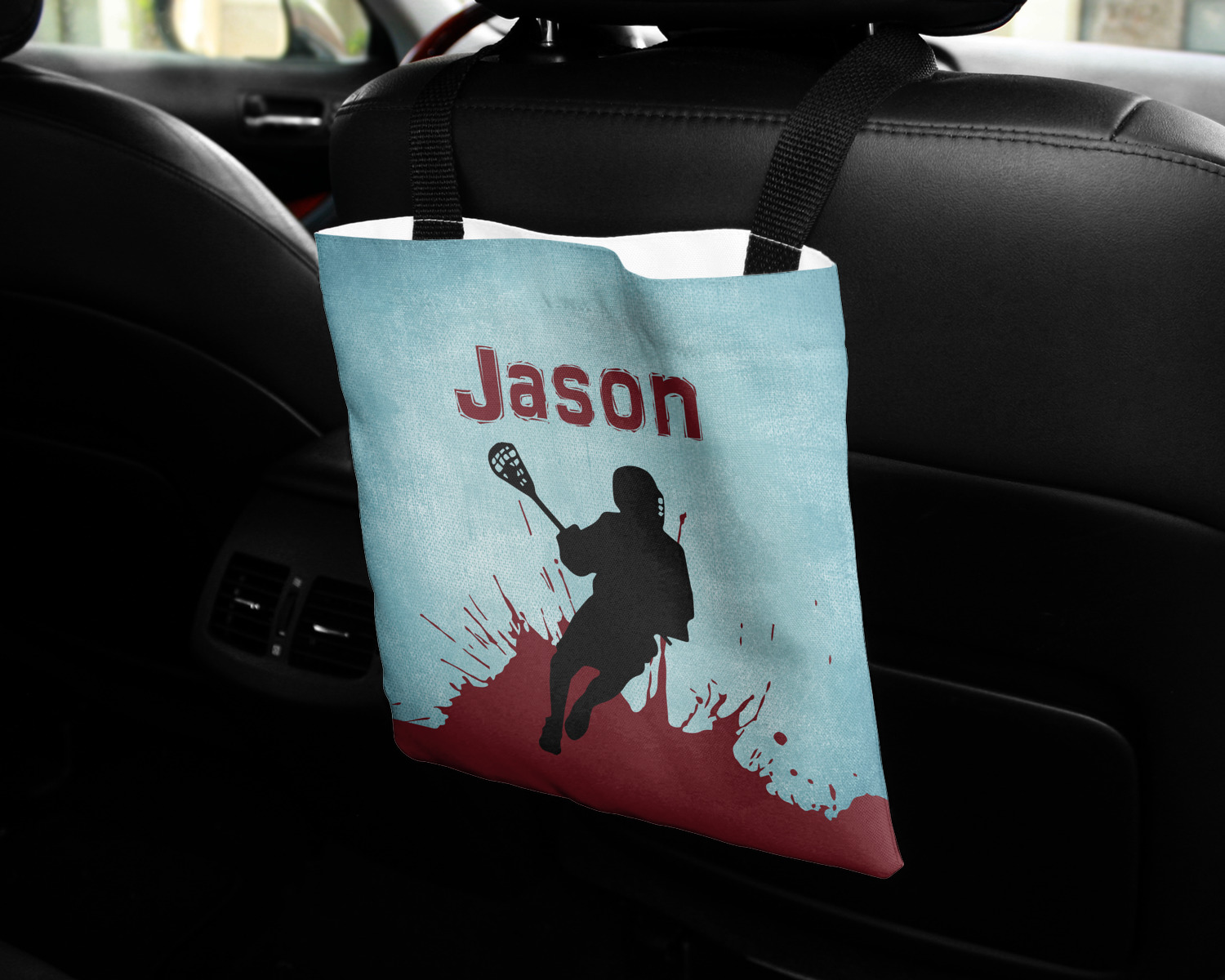 These car back seat organizers are sturdy tote-like bags, fabricated from a robust polyester, and features a single handle on the back side. The strap features an attachable velcro for easy attachment to headrests, grocery carts, car seats, and more. Simply undo the velcro, loop the strap around the headrest, reattach the velcro, and let the organizer hang from the front seat. These car organizers are the perfect means of increasing your backseat's legroom, while storing multiple items in one place for better accessibility. Each car back seat organizer measures at 10 by 10 inches, and features your personalized design printed across its front and back.