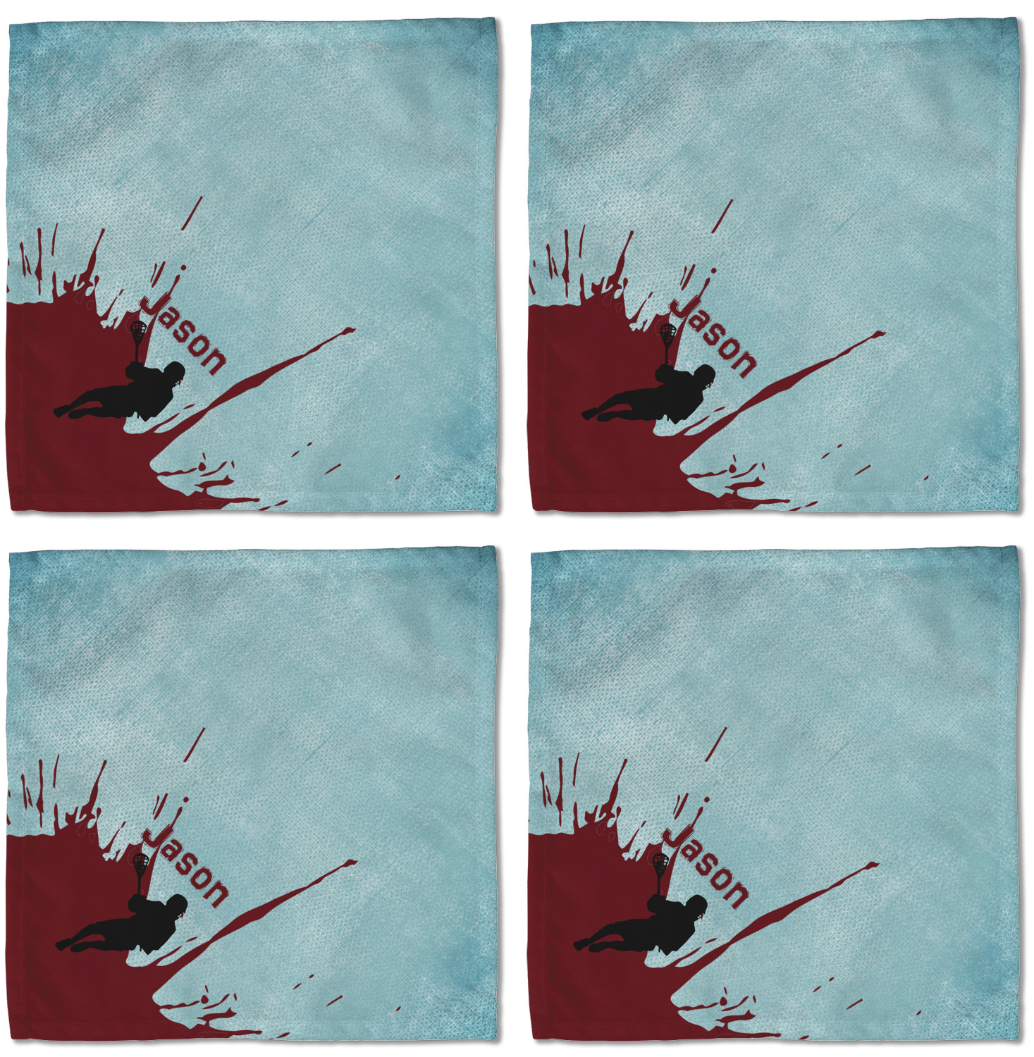 Each customizable cloth napkin is a polyester material guaranteed for long-term use. Since our napkins are cloth, it serves as a great reusable and eco-friendly dining decor. We sell personalized napkins individually or as a set of 4! Print your own unique design on all four napkins, or create four individual designs for each napkin! We offer two different napkin sizes - Cocktail napkins (approx. 10 x 10) and Dinner napkins (approx. 20 x 20). We print your design on one side, perfect for displaying your custom designed lunch napkins in any fold or table setting!