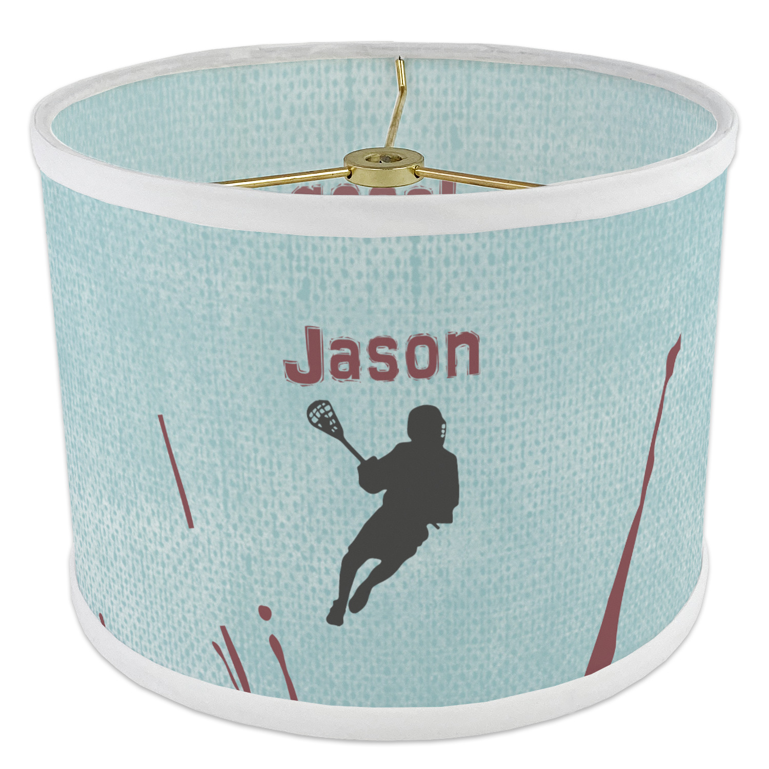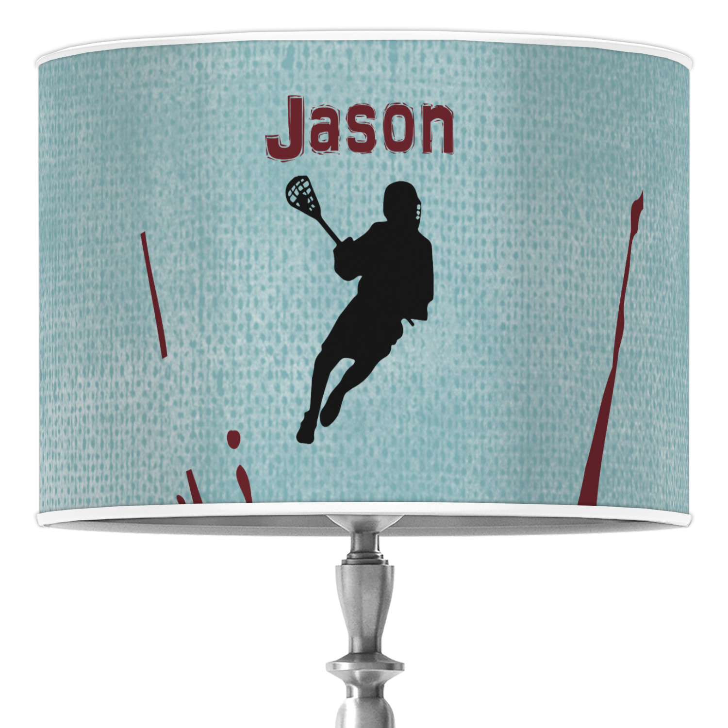 This design has a cool blue background with a literal splash of maroon. Your personalization goes above the lacrosse player silhouette. The movement in this design gives the perfect feeling for a sports design.