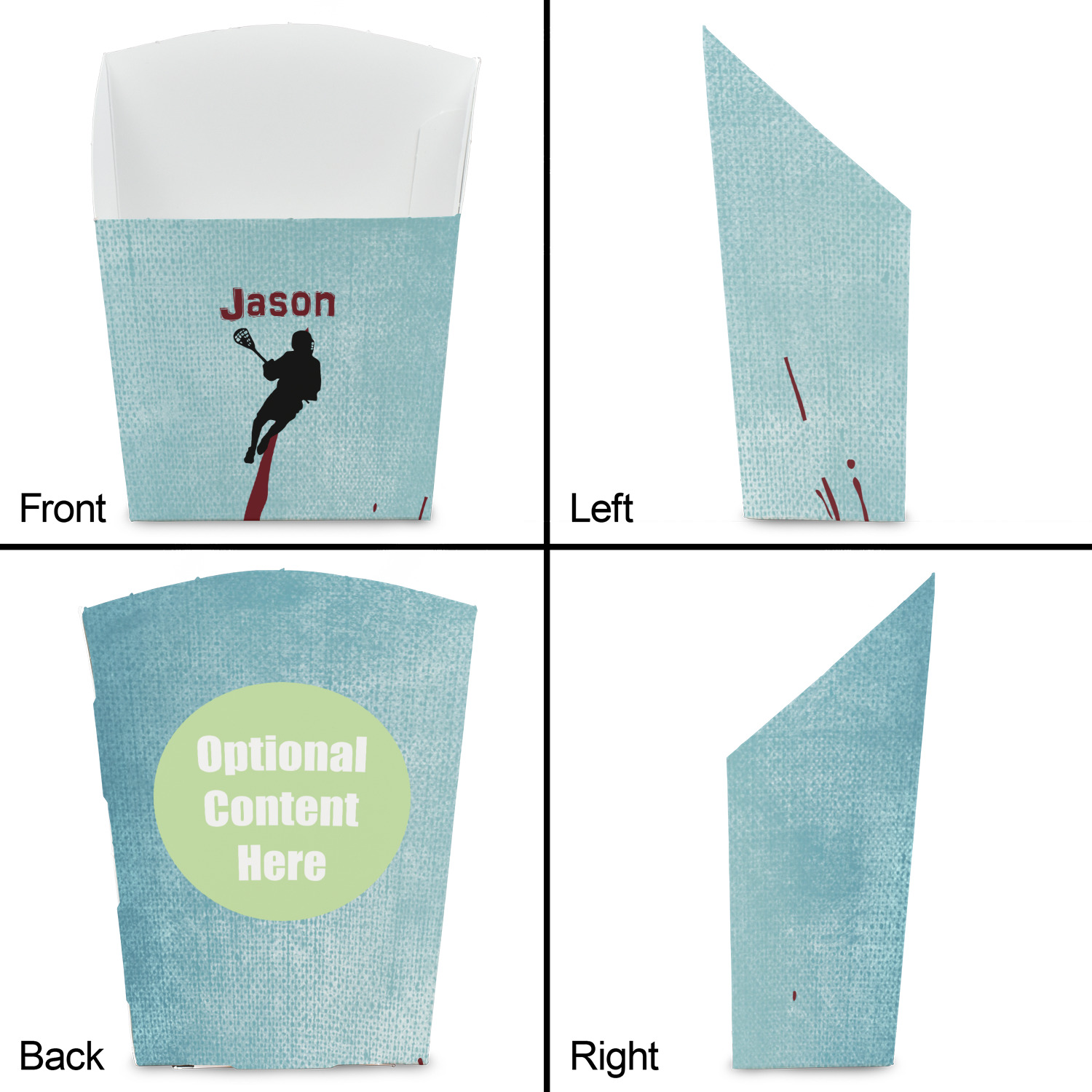 These favor boxes are printed in full color on quality cardstock - so coordinating the french fry favor boxes to match your event's themes or colors should be a breeze. You can upload your own design including artwork, logos or photos