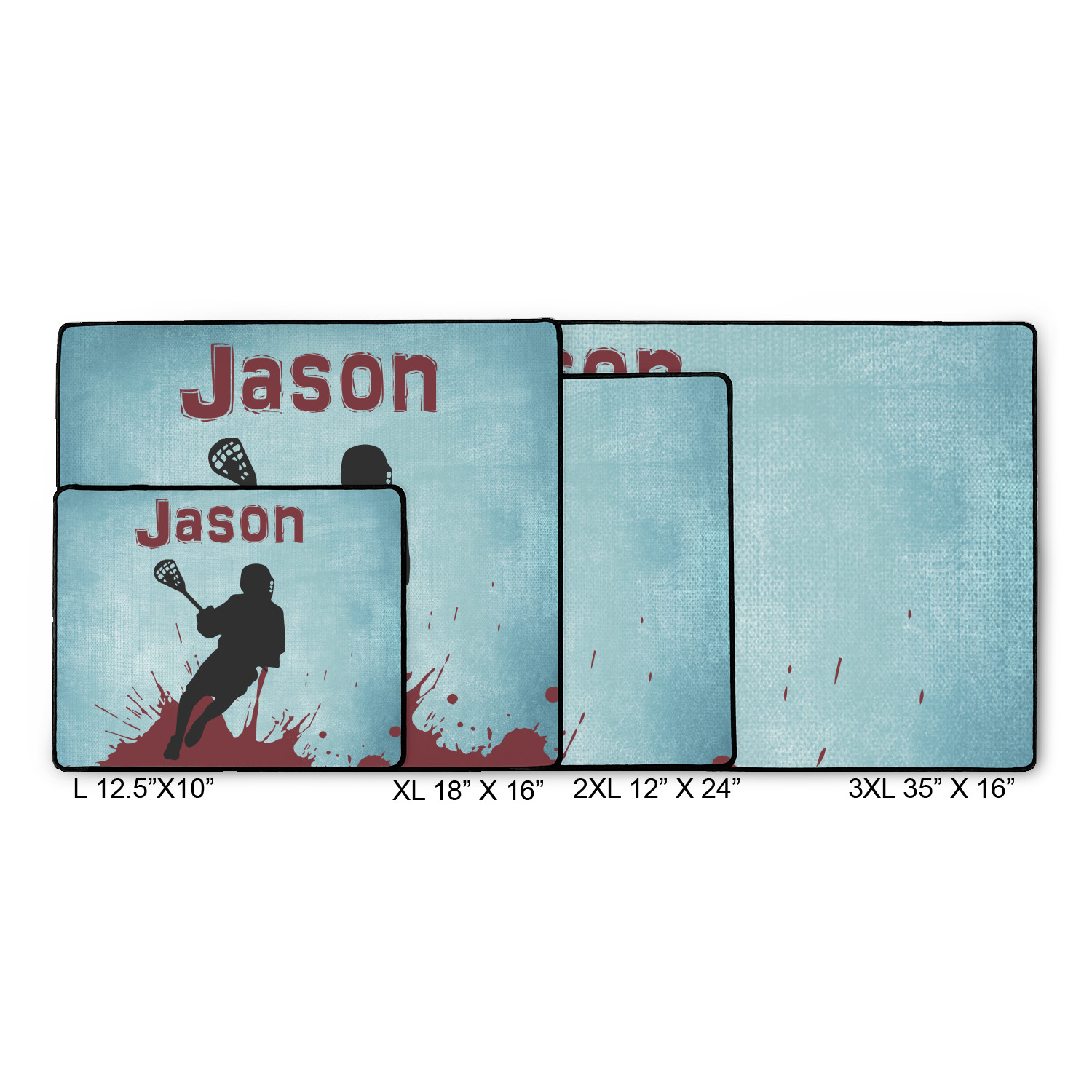 This design has a cool blue background with a literal splash of maroon. Your personalization goes above the lacrosse player silhouette. The movement in this design gives the perfect feeling for a sports design.
