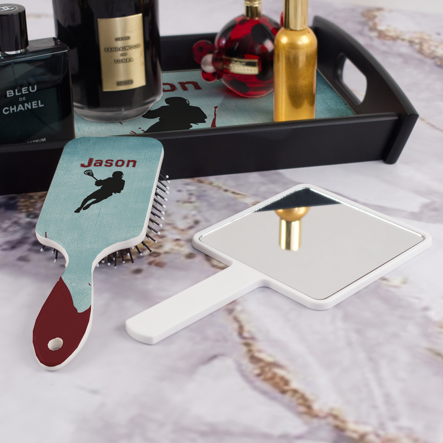 These hair brushes pair with our customizable hand mirrors to make a great gift set.