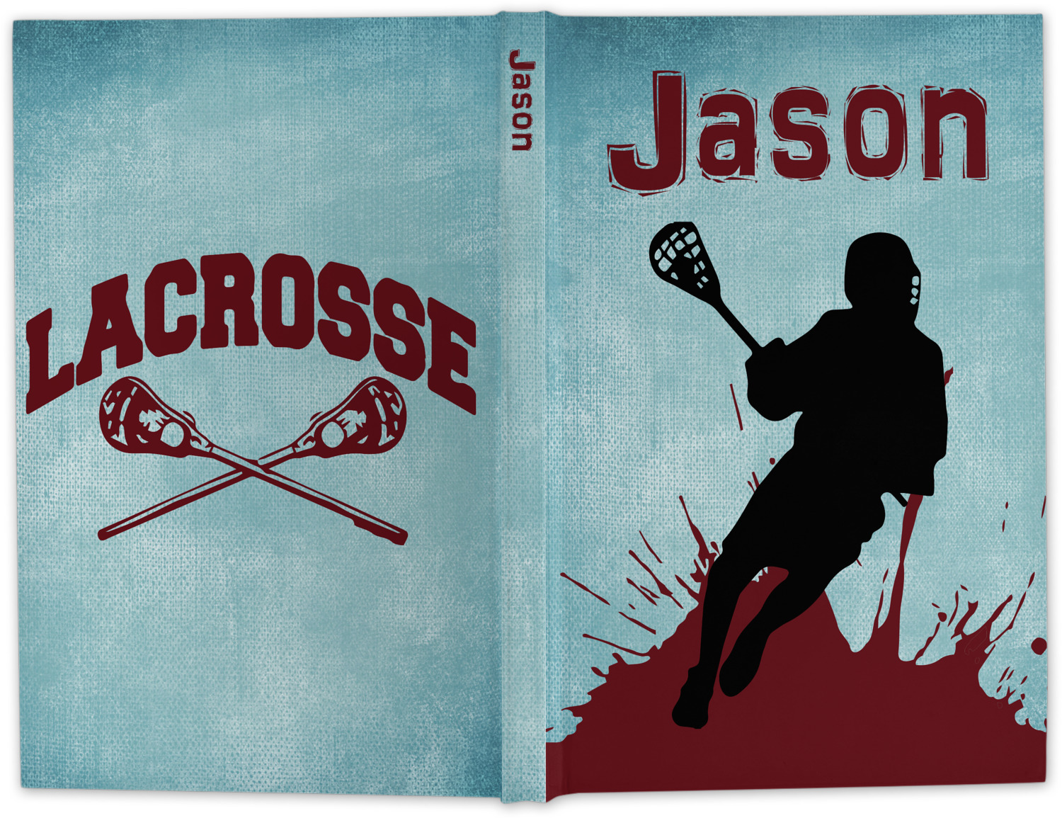 This design has a cool blue background with a literal splash of maroon. Your personalization goes above the lacrosse player silhouette. The movement in this design gives the perfect feeling for a sports design.