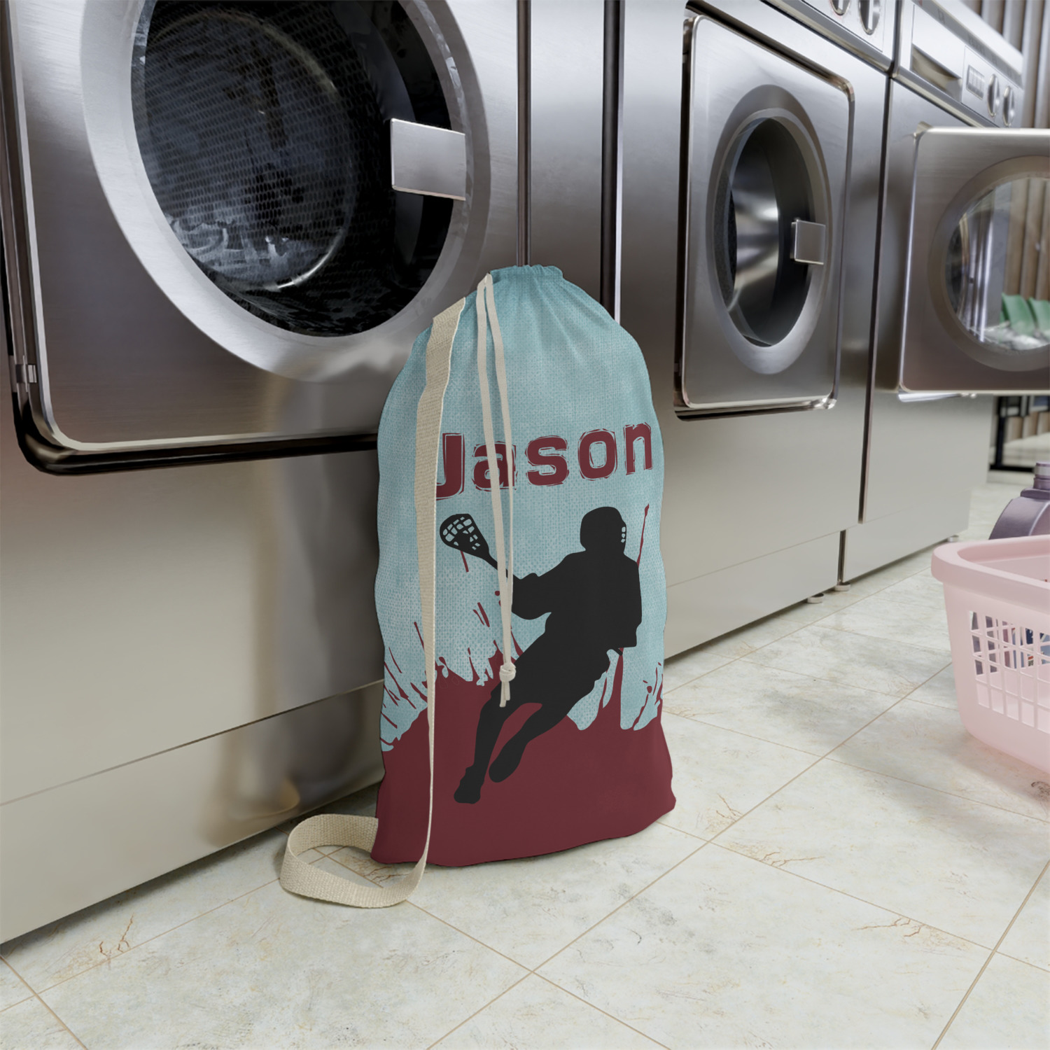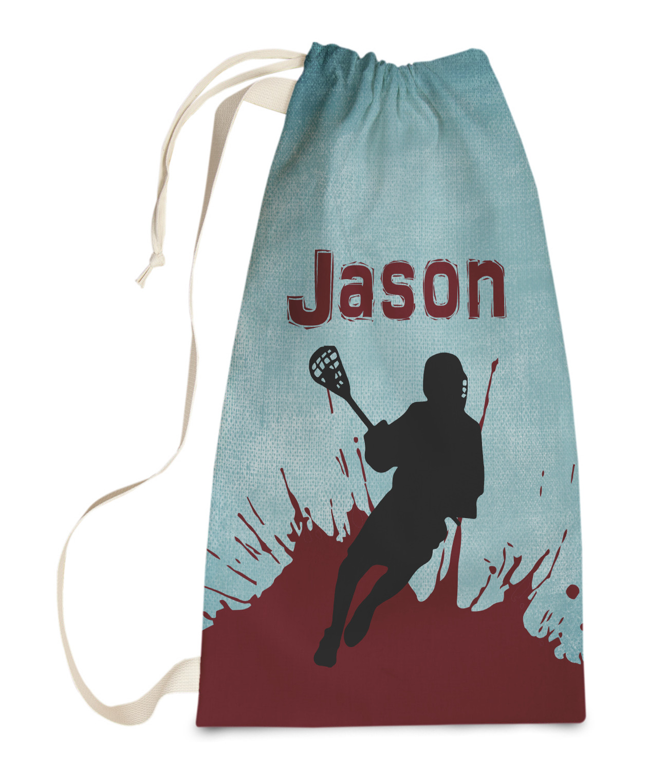 Carry your laundry in style with these customized laundry bags. Available in two sizes, featuring a natural colored woven strap and a cinch cord, these bags hold a lot of clothes or anything else you want to fit in them.