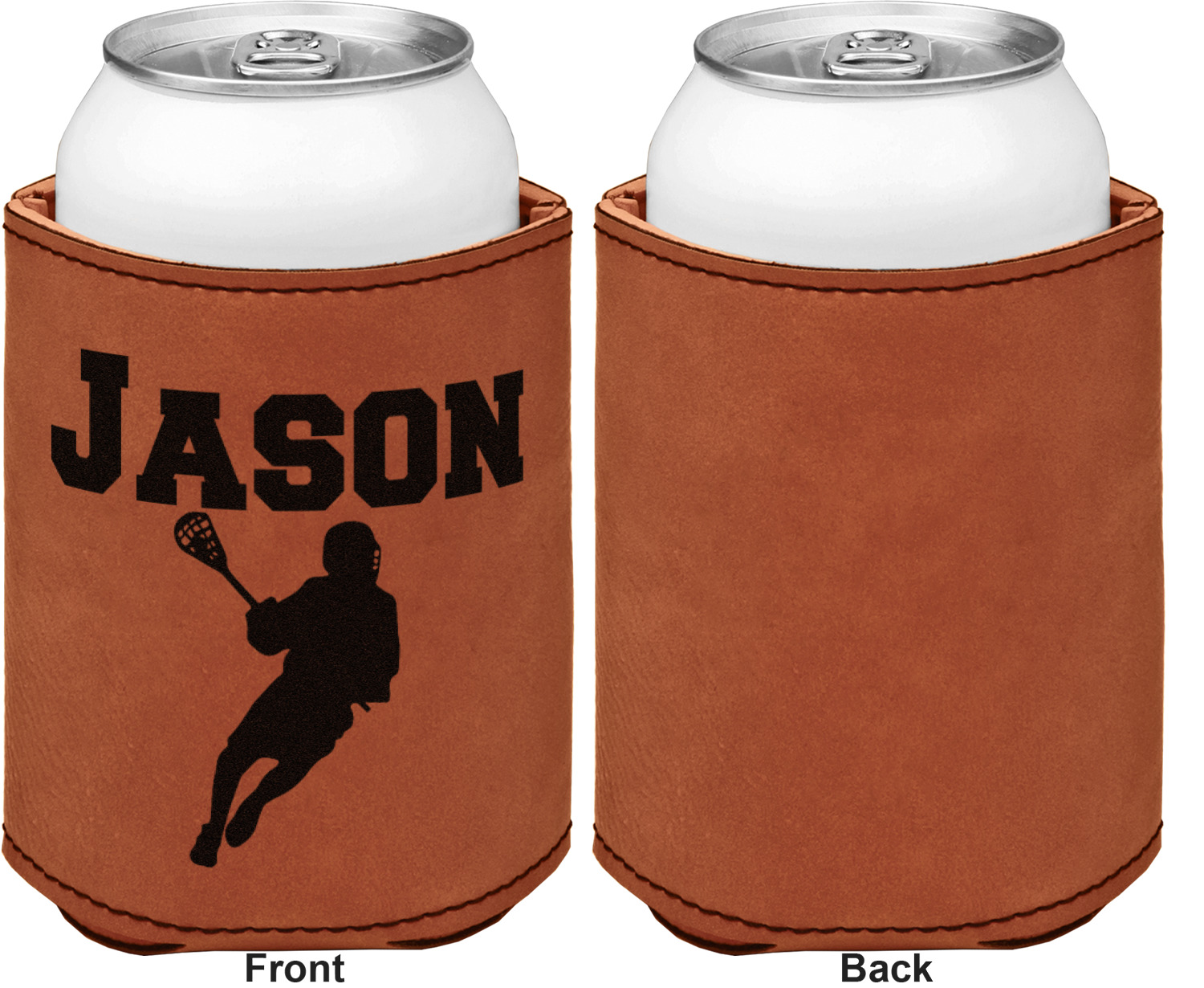This can sleeve is made from a cognac-brown leatherette and stitched with a sturdy, black thread. A slim padding lines the inside of your can sleeve to allow for a better fit once your drink is inserted. The sleeve itself measures at 4 by 4.5 inches, allowing this custom can sleeve to accommodate most canned drinks. Your personalized design can be engraved on the front and back, or solely the front. When laser-engraved, your design appears as a black coloration which contrasts the leatherette nicely.