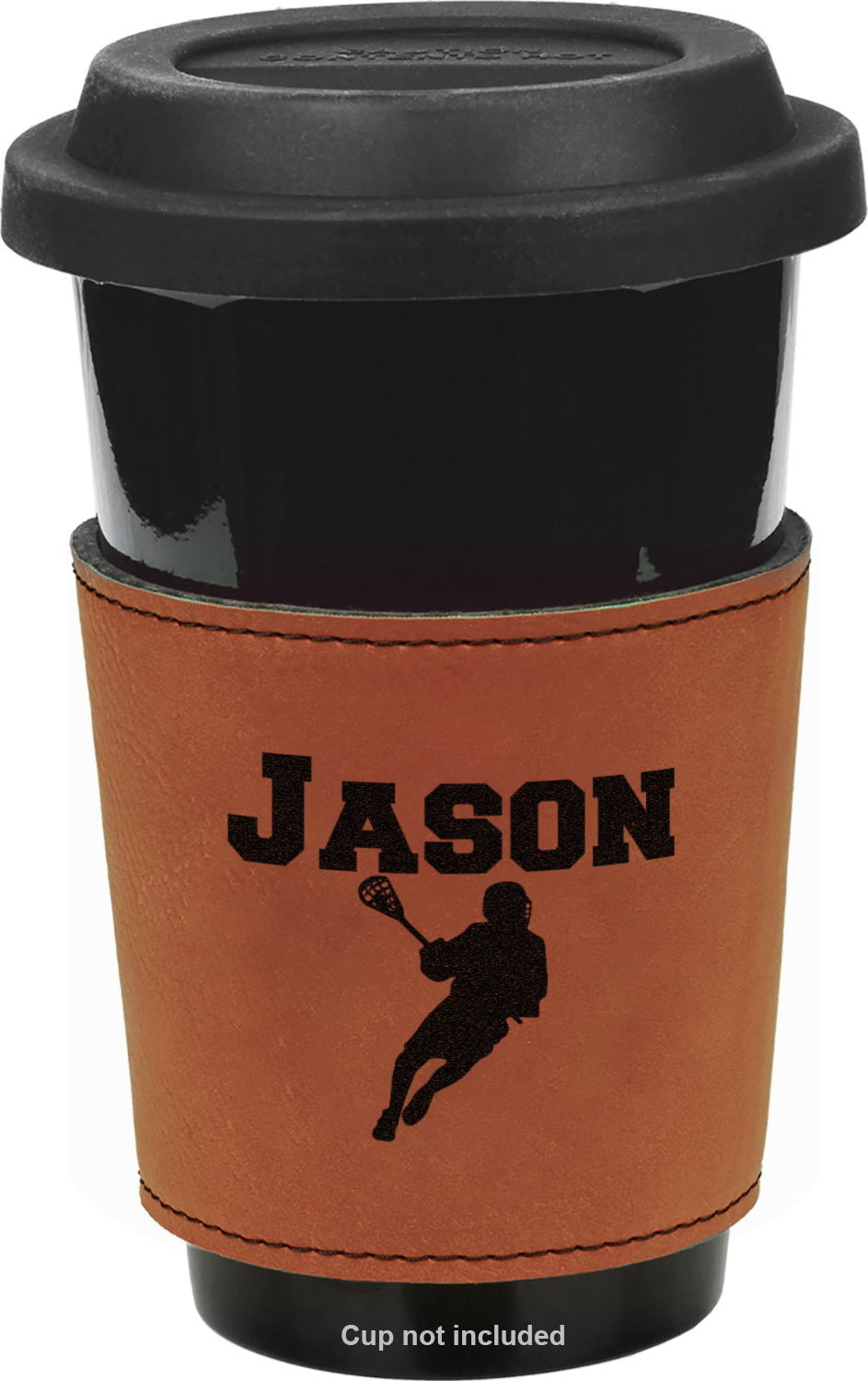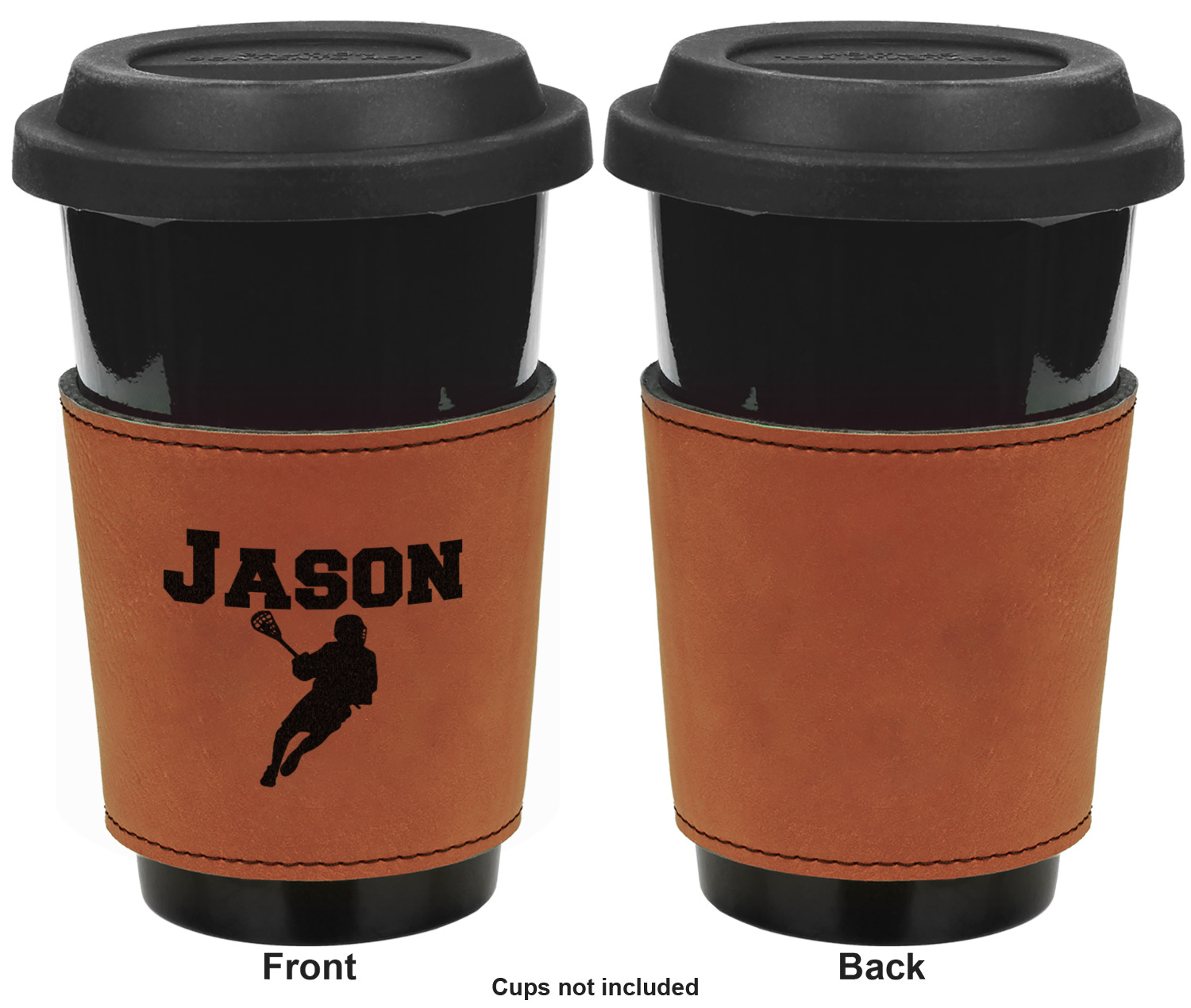 This cup sleeve is made from a suave, cognac-brown leatherette and finished with an intricate, black stitch. The interior of this can sleeve is fabricated from a thin foam material to help insulate your mug's contents. The sleeve is specifically made to suit tapered glasses or mugs, so the top's diameter is 3.5 inches, while the bottom's diameter is 2.75 inches. Your customized design will be laser engraved into the leatherette, leaving behind crisp, black imprint. With these products, we provide you with the option of engraving the front and back, or the front only.