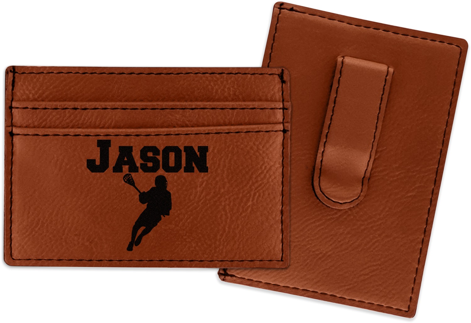 Made from a smooth brown leatherette material, these money clip wallets are the perfect accessory. They measure at approximately 4" x 2.75". On one side there is a money clip where you can slip in your cash. On the other side are three card slots for an ID and credit card or two. The money clip wallet will be laser engraved with your design on the side with the credit card slots. The graphic will come out as a black color.
