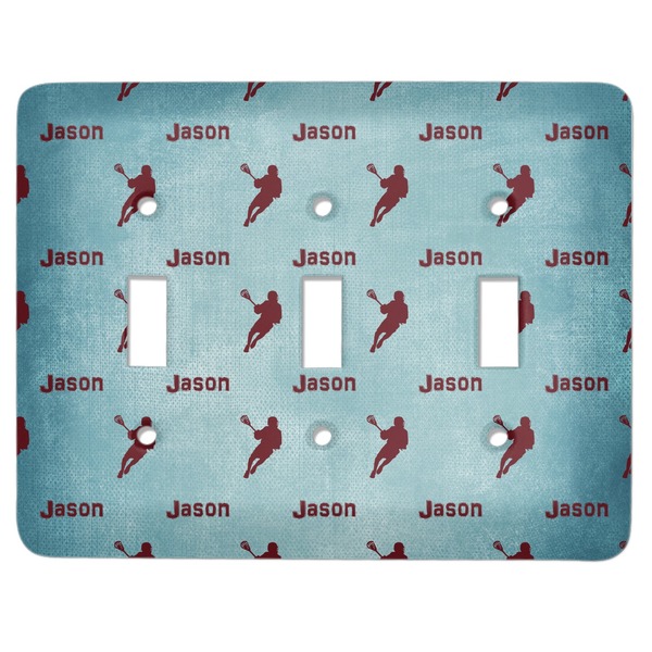 This design has a cool blue background with a literal splash of maroon. Your personalization goes above the lacrosse player silhouette. The movement in this design gives the perfect feeling for a sports design.