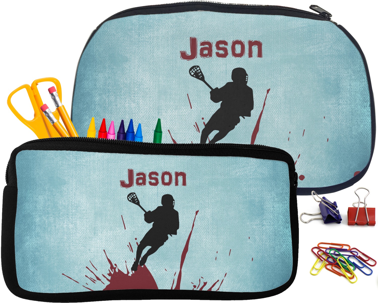 Built from durable neoprene, these pencil pouches, are water resistant, and prevent leaking ink from spilling into your backpack or purse. These custom pencil cases secure with a robust, black zipper. We print your personalized design on the front of this pouch, while the remaining sides a simple black color. These colored pencil cases [880] are sold in two sizes; our smaller version measures at 8.5 by 4.5 inches, while the medium measures at 10.5 by 6.5 inches. The smaller size is more suitable for holding pencils and pens, while our medium size can accommodate pencil sharpeners, scissors, and erasers.