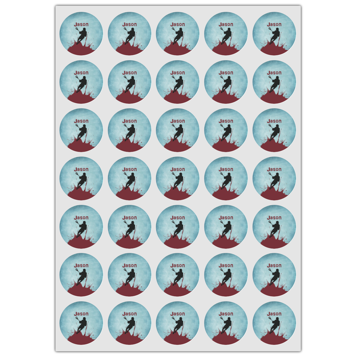 This design has a cool blue background with a literal splash of maroon. Your personalization goes above the lacrosse player silhouette. The movement in this design gives the perfect feeling for a sports design.