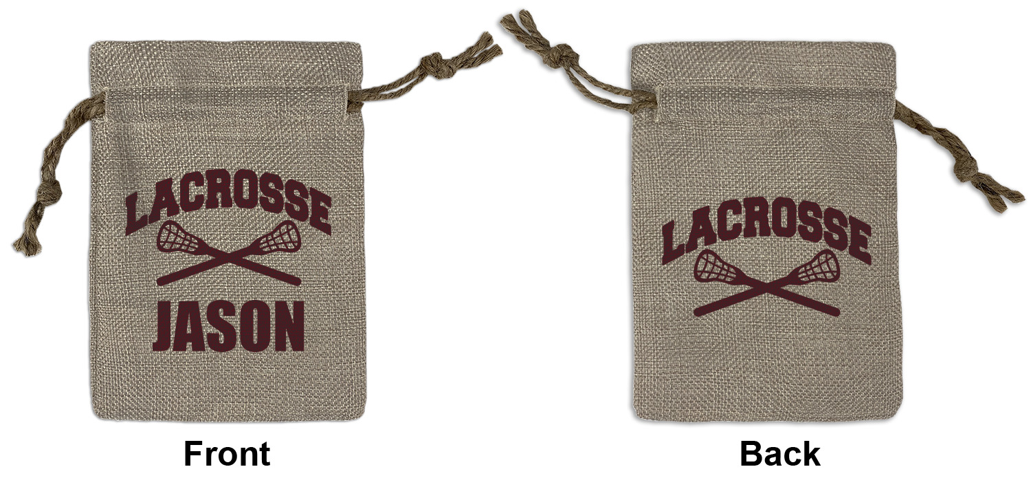 We sell our Burlap Gift Bags in 3 variant sized bags. Made with burlap polyester, each personalized bag can be secured with a twine drawstring pull. Your custom design is available to print on one side or both sides - completely up to you! The sizes of the bags measure approximately 4.5" x 6.5" for the smallest size, 6.5" x 8.0" for the medium size, and 6.5" x 13.5" for the large-sized bag.
