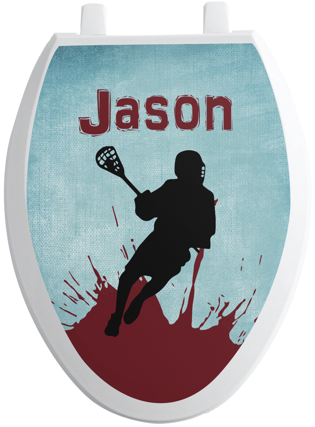We sell these toilet lid decals in two different shapes to accommodate a wider range of toilet seat shapes. The first shape is our standard, round size, which measures at 13.5 by 12 inches. Our second option is an elongated shape, suited for long toilet seat covers. It measures 15 by 12 inches.