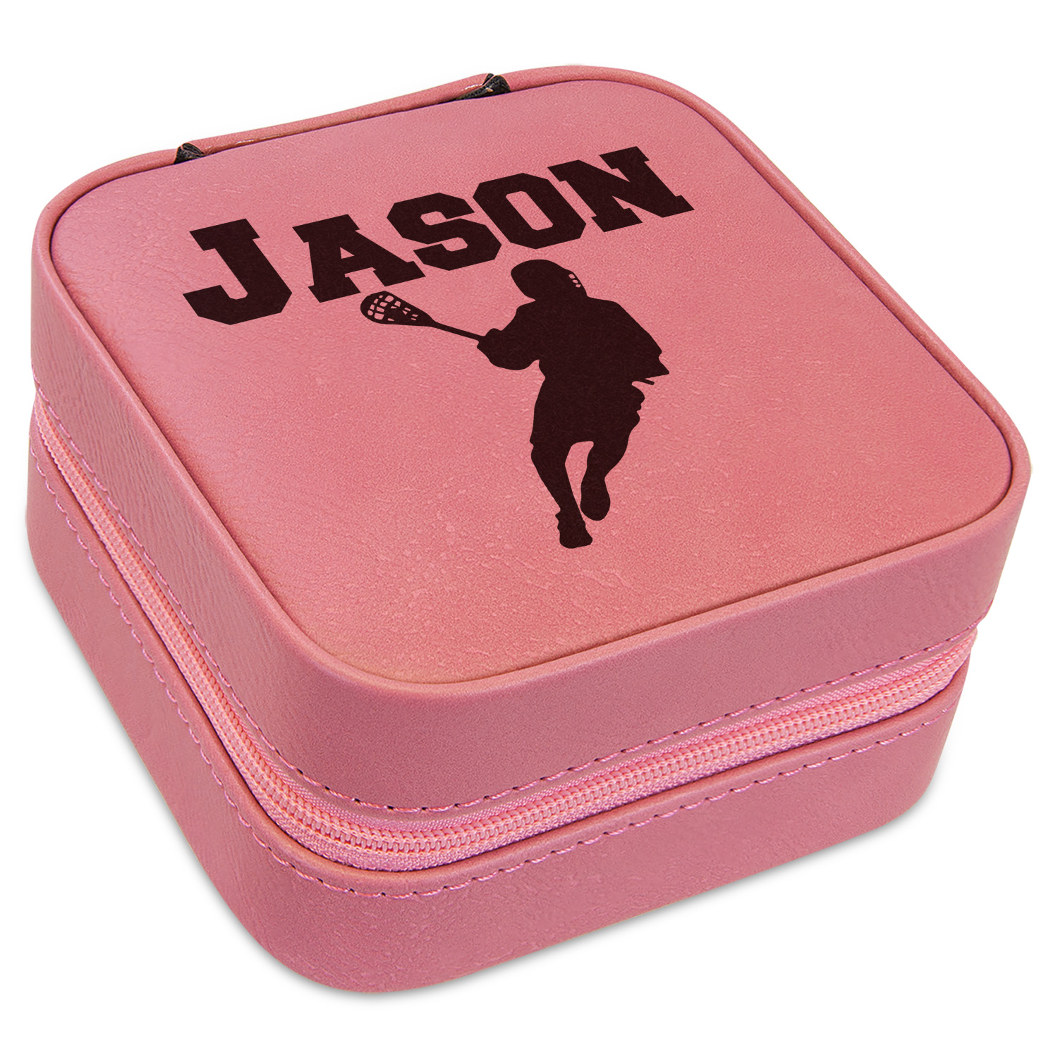 This square zippered travel jewelry box is made from leatherette and is available in four colors - classic cognac / rawhide, a beautiful teal. navy blue or pink. The tan colored soft velvet inside has compartments and hooks for all your jewelry - rings, chains, earrings, bangles etc.