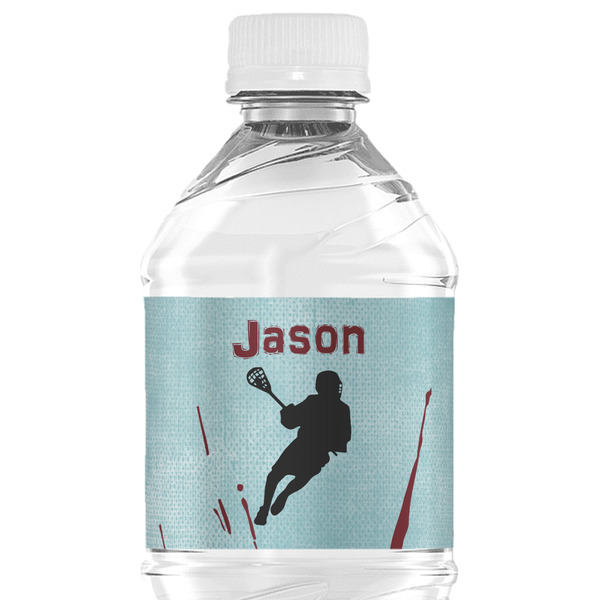 This design has a cool blue background with a literal splash of maroon. Your personalization goes above the lacrosse player silhouette. The movement in this design gives the perfect feeling for a sports design.